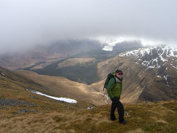 Raymond, Paul, James and Norrie set off back over Meall Tarsuinn towards Stob Coir an Albainnaich and met Jim between the two hills. He had completed four of his five Munros and was looking remarkably fresh.