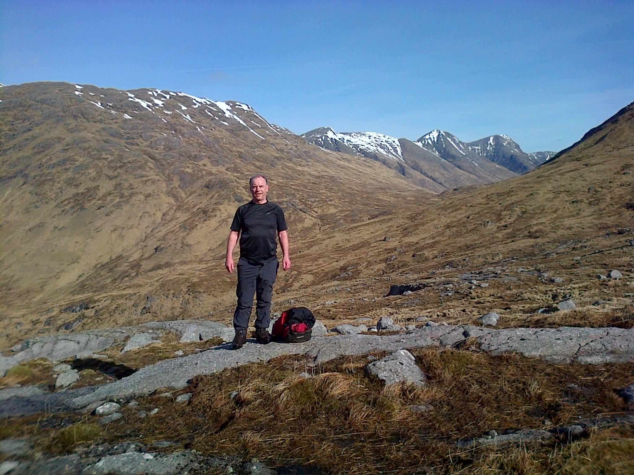 The other members soon arrived – Raymond having run 20 miles along the West Highland Way from Tyndrum to The Kingshouse in preparation for his forthcoming big run. The early evening entertainment revolved around James’ historical (and sometimes hysterical) photo collections of previous mountain trips. In the past James and Paul seemed to enjoy walking bare-chested in the hills but fortunately for the hillwalking community they mostly now elected to remain suitably covered up.