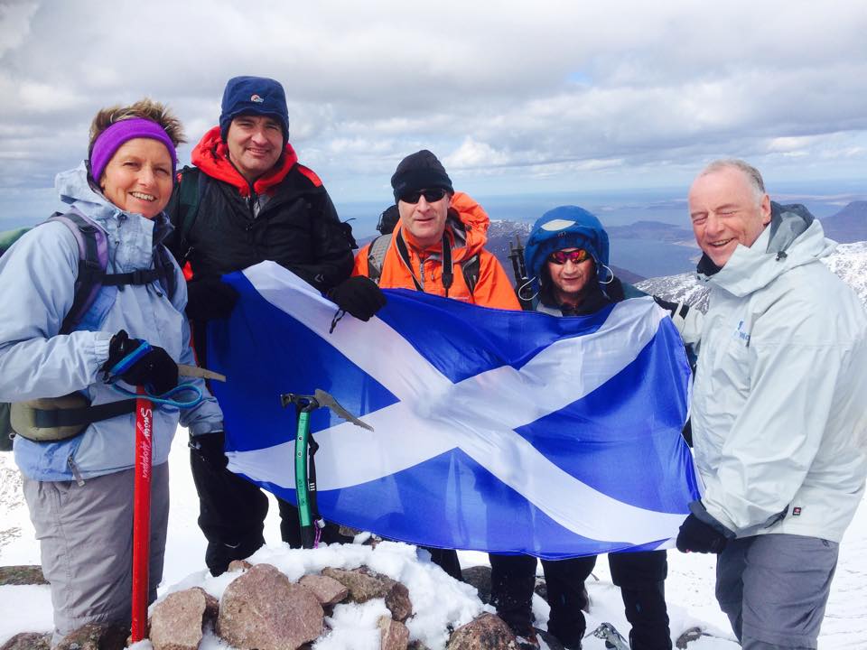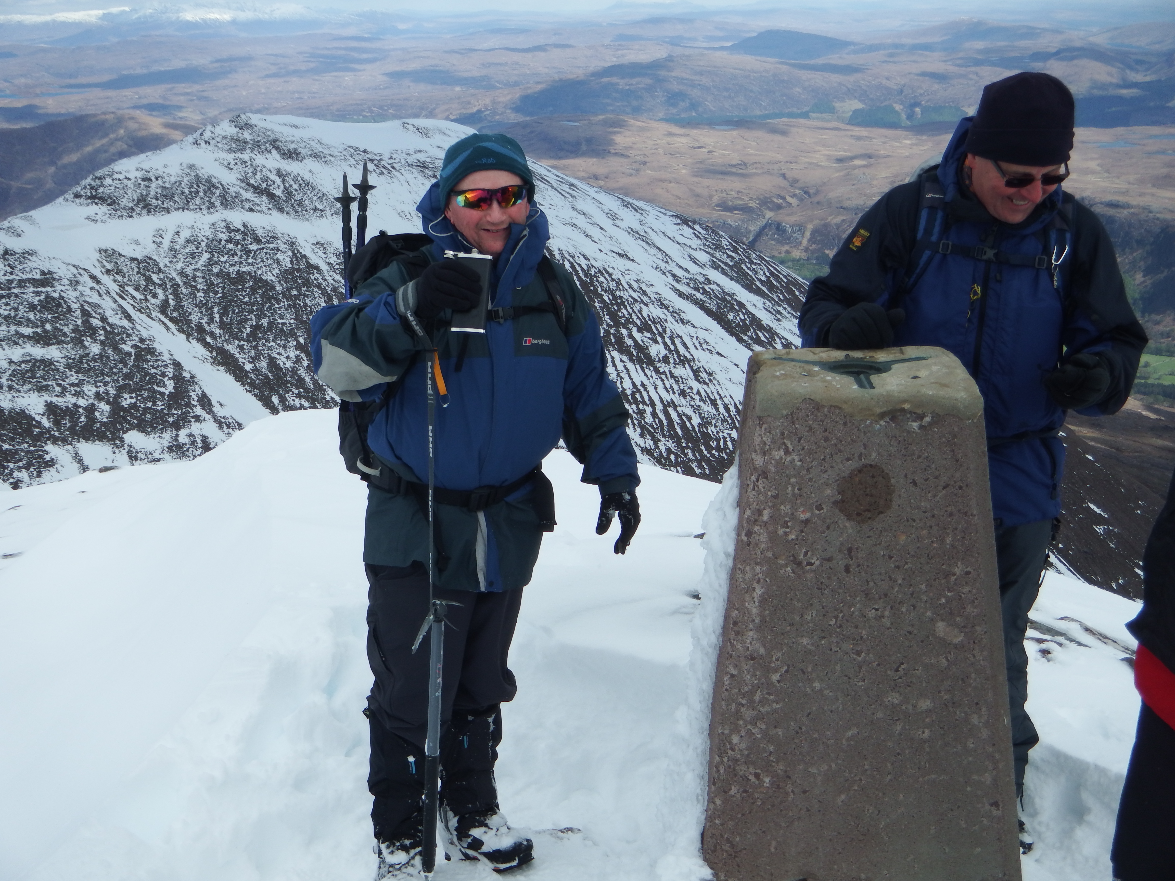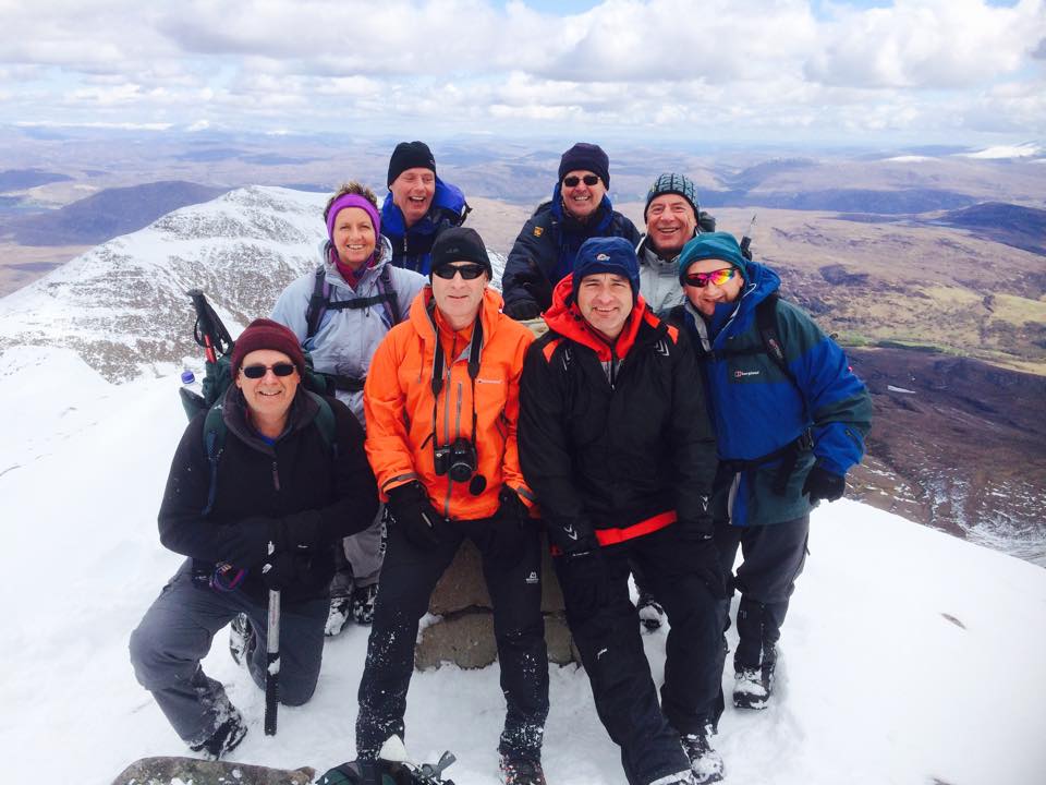 A short descent followed by a steepish climb led up to Bidean a’ Ghlas Thuill at 1062 metres the highest point on An Teallach. A thrilling climb was celebrated by all with a warming sip of Glenlivet 12 yo.
