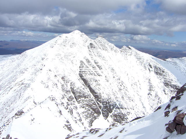 The rest of the party “enjoyed” a very steep descent and equally steep ascent up the ridge to Sgurr Fiona. This Munro is a couple of metres lower than Bidean a’ Ghlas Thuill , but in many people’s opinion it is the finer summit.