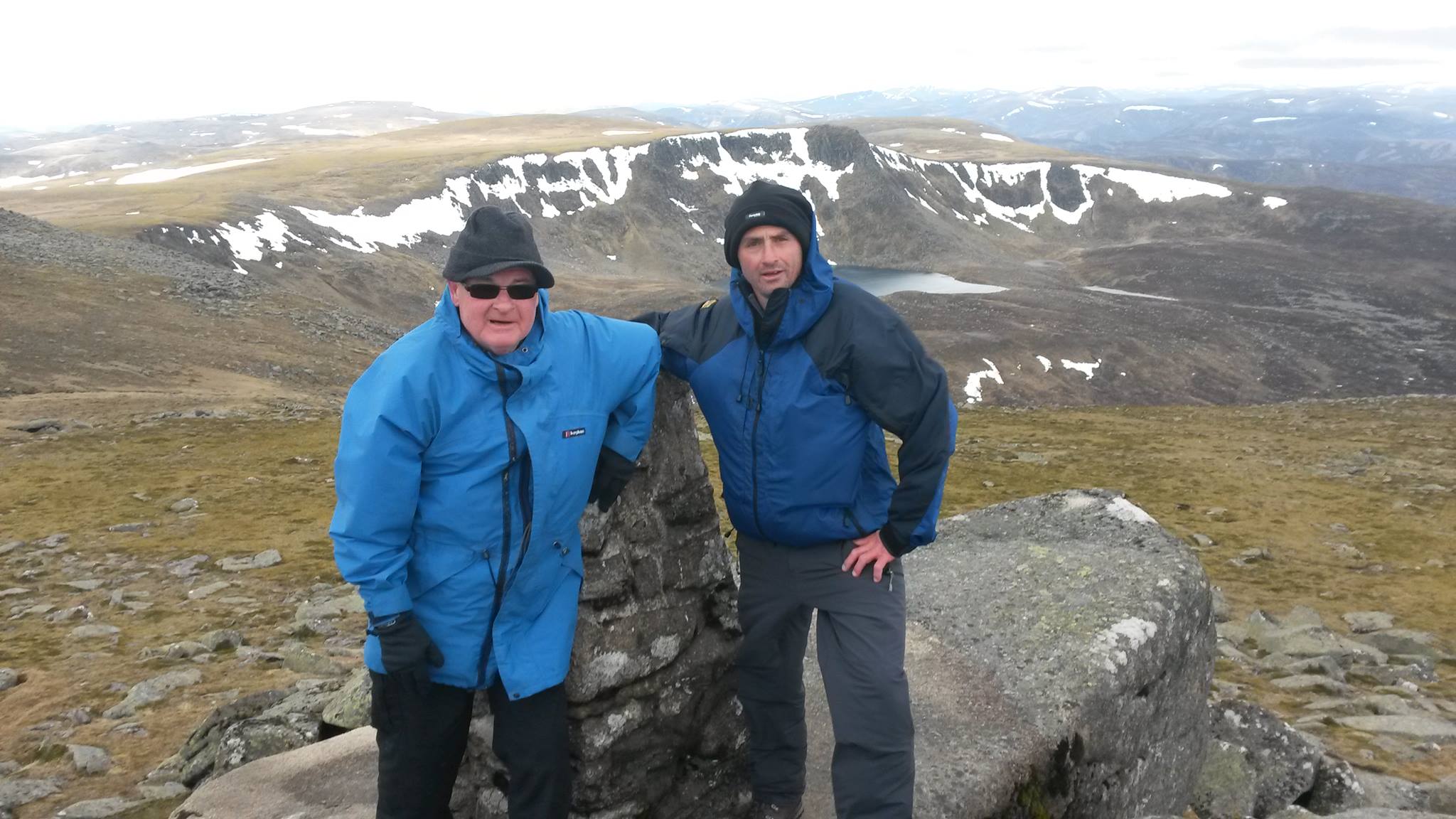 Andy had declared that he wanted to climb Lochnagar before heading back down to Lancashire so he and Jason duly drove round to the Spittal of Glen Muick to tackle this, the most prominent mountain the region. Cloud was hanging over the summit when they started but it soon cleared and they successfully gained the highest summit of Cac Carn Beag to round off a great week for them albeit not in the most favourable conditions.