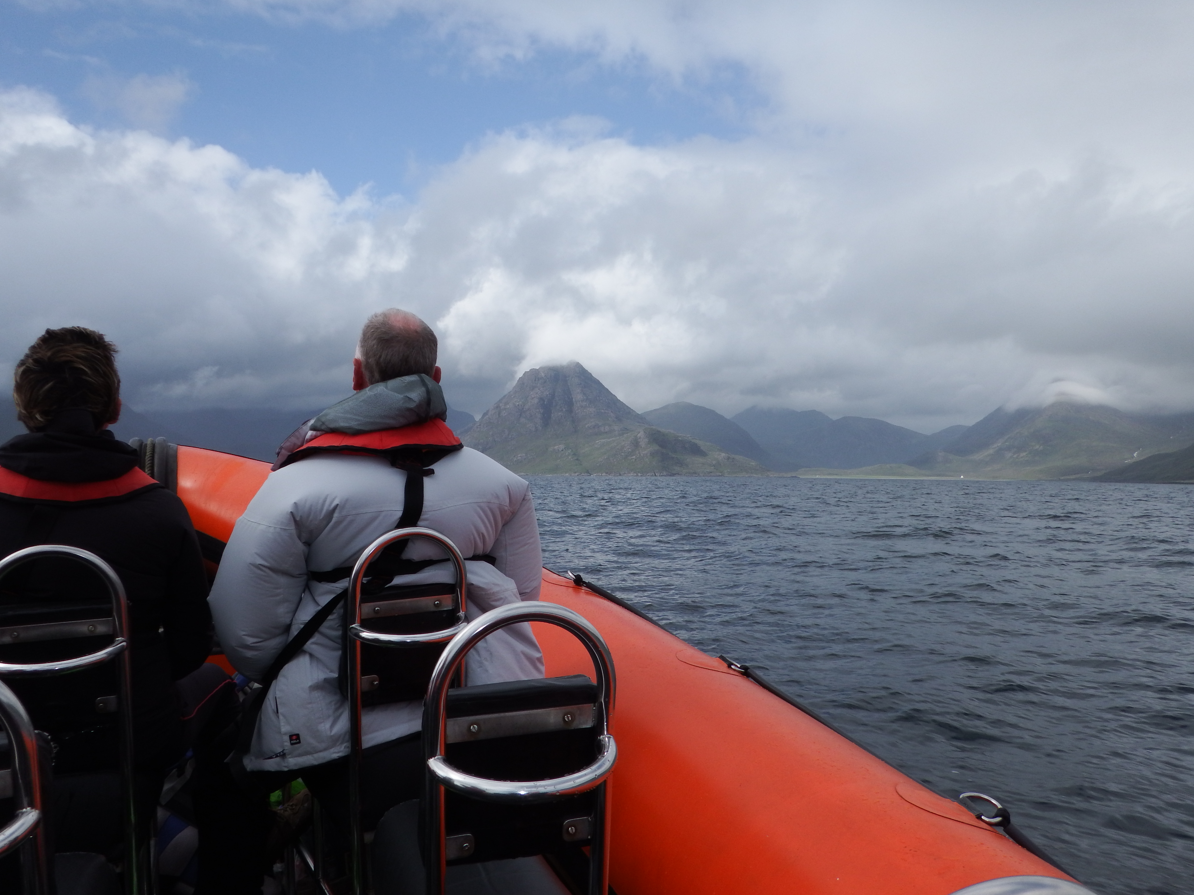 The first eight to arrive were ferried over on an earlier boat leaving the other five to be bounced over in rapid time on the AquaXplore RIB. Skipping over the ocean into Loch Scavaig certainly got the pulses racing and the hair blowing in wind – well, in some cases at least.