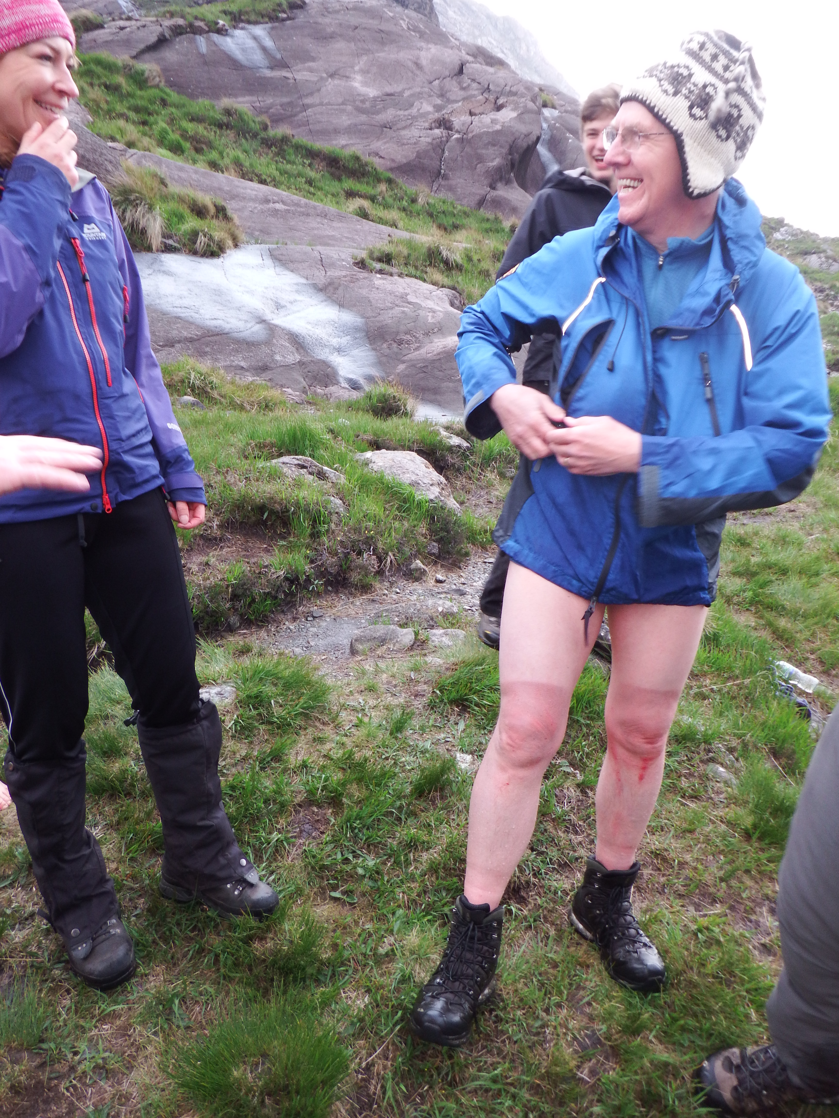 All went well until he reached the rock island in the middle. A couple of yards into the second leg of the crossing, it all went horribly wrong. Jim completely lost his footing and slipped head first into the drink. The hysterical laughter from the remaining club members echoed loud and clear round the Cuillin amphitheatre. When he called out that his trousers had been whisked away in the flow the hysteria increased to a completely new level. Only when he added that his car keys were in his pocket did everyone realise that the issue was a bit more serious.