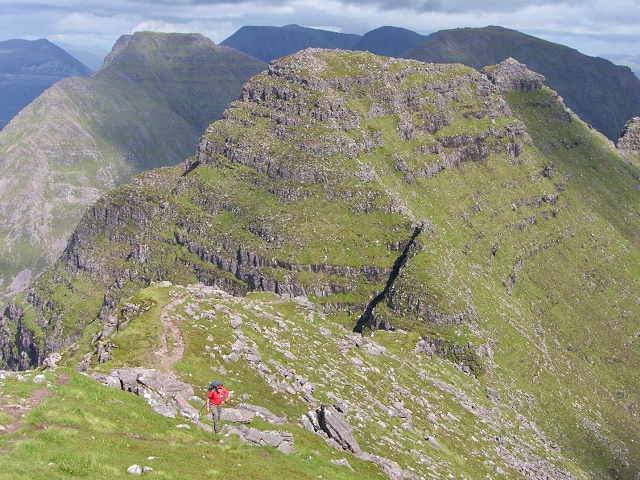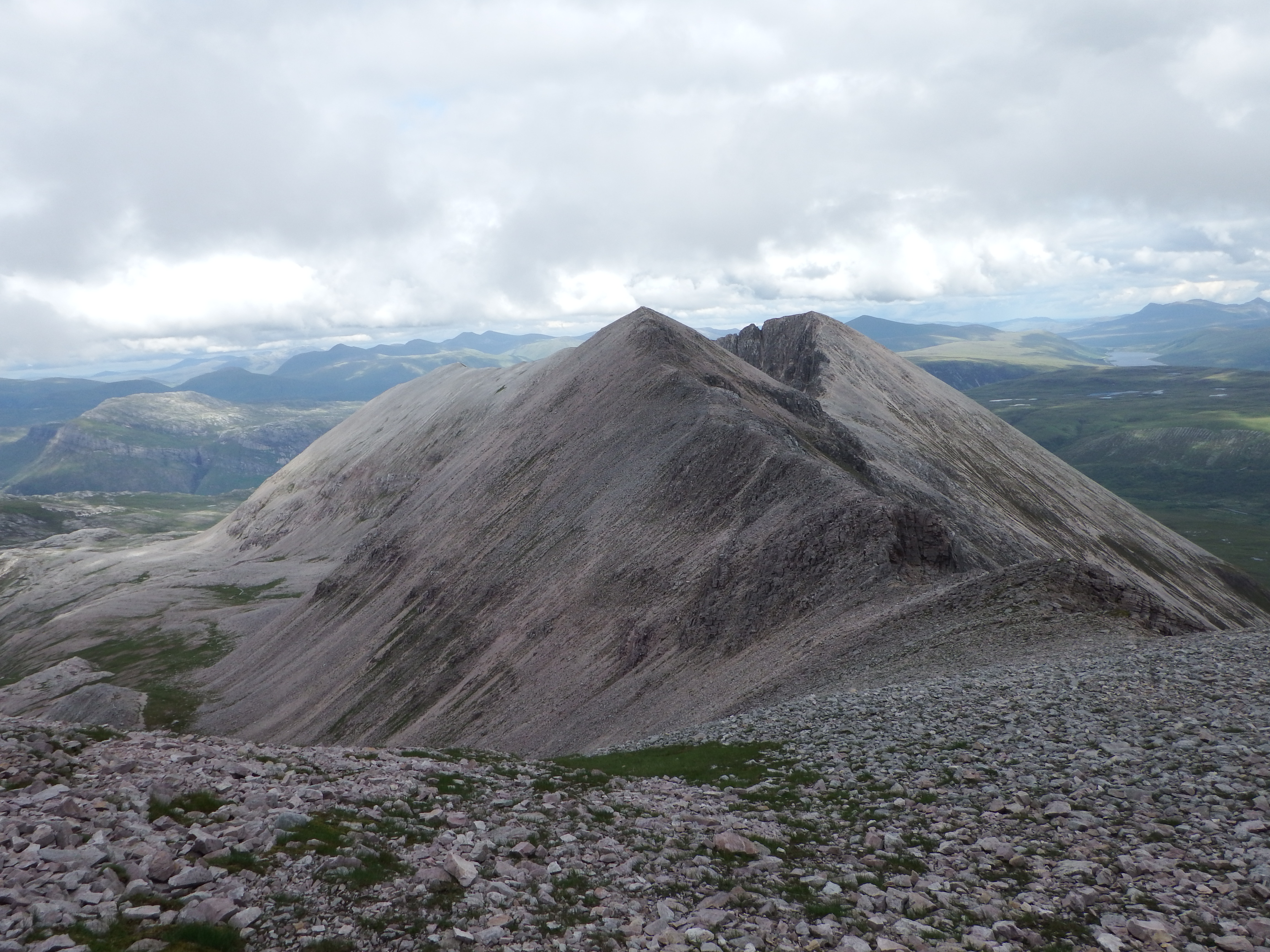 From there it was a very pleasant high level ridge walk round passed the trig point to the second Munro, Spidean Coire nan Clach. The weather threatened to close in at this point but fortunately the threat dispersed as George and Susan headed further east along the ridge heading for the demoted Top of Creag Dhubh. Norrie took a fairly direct descent down to the road and picked up the car before driving along to Kinlochewe for the planned rendezvous at the Hotel.