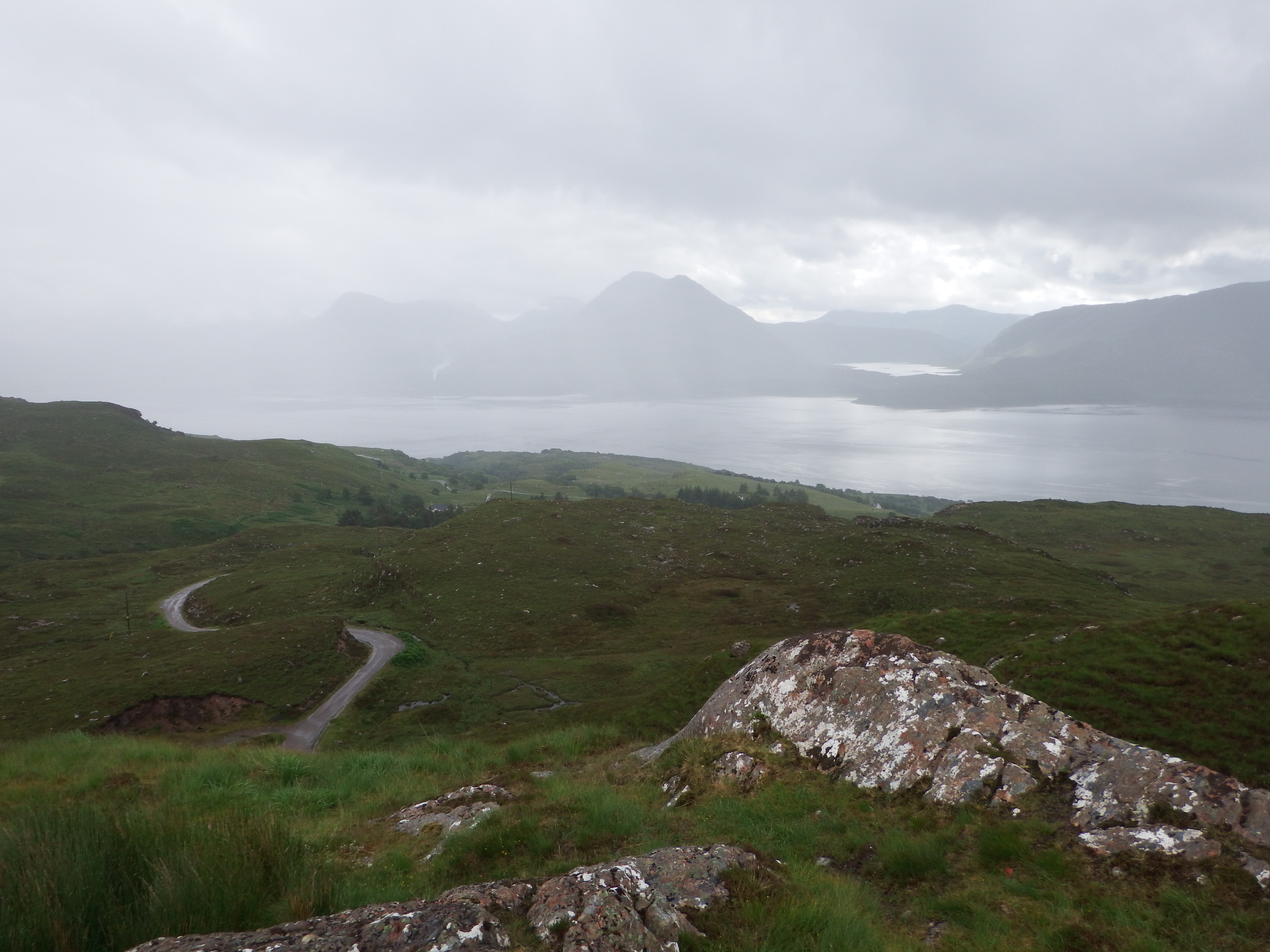 Having obtained details of Friday’s forecast from the nearby Youth Hostel which promised improving weather as the day progressed they decided to exercise their renowned patience and leave their ascent of Beinn Alligin until the afternoon. The morning was whiled away with a trip along the road to the tiny settlement of Lower Diabaig nestling serenely by Loch Diabaig. After some sustenance taken at the Gille Brighde restaurant they headed back east to the car park at the foot of the mountain.