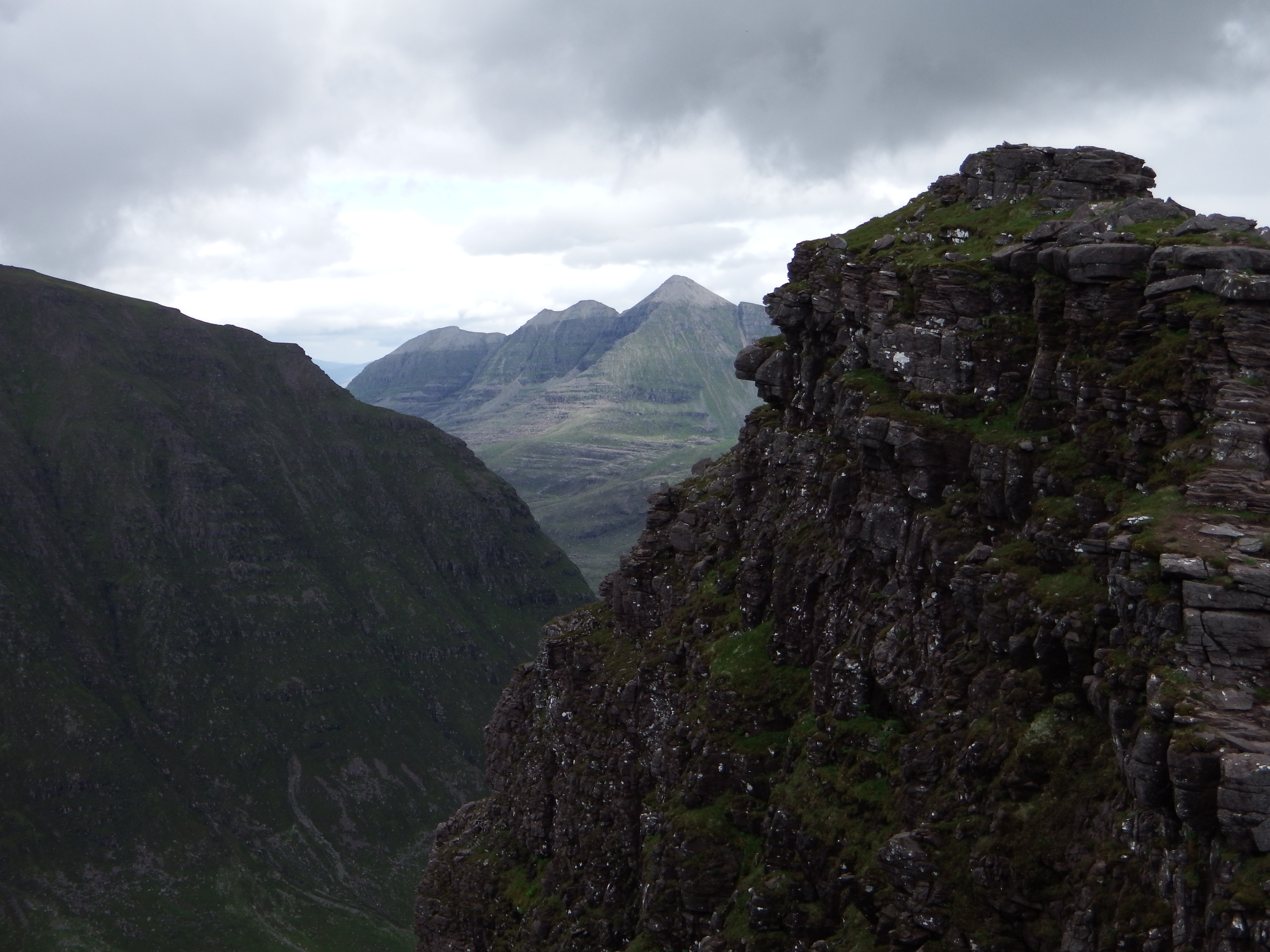 The walk up Coire MhicNobaill was glorious with great views of the joys ahead – the Horns of Alligin, the main summit of Sgurr Mhor and the imposing gash of the black cleft Eag Dhubh. The scrambling up and over the three Horns was fairly straightforward but enjoyable and the stupendous viewpoint of Sgurr Mhor was soon reached.
