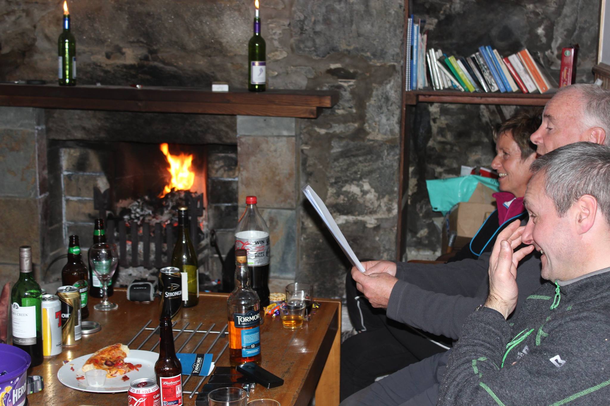 George’s poem received a second reading and in customary fashion the guitar made an appearance later in the evening. Gentle melodies were carefully plucked in a cathedral-like atmosphere – well, maybe it wasn’t quite like that. Norrie’s over enthusiastic caterwauling eventually needed a rest and the song books were passed around giving everyone an opportunity to air their vocal chords. The highlight was undoubtedly a powerful and passionate rendition of “House of the Rising Sun” by James – standing tall to give his diaphragm maximum opportunity to project his voice across the room and over the moor to Achnasheen.
