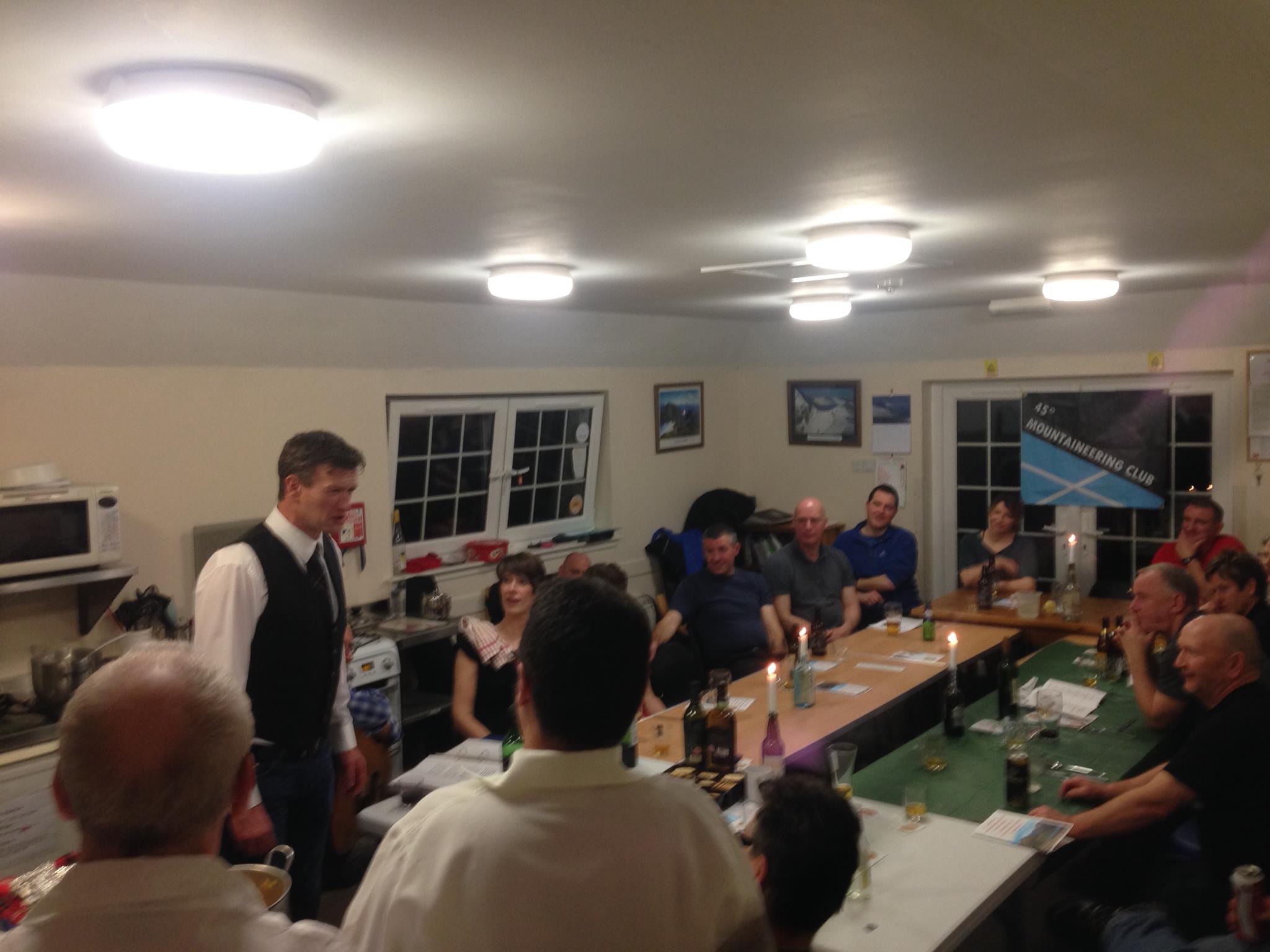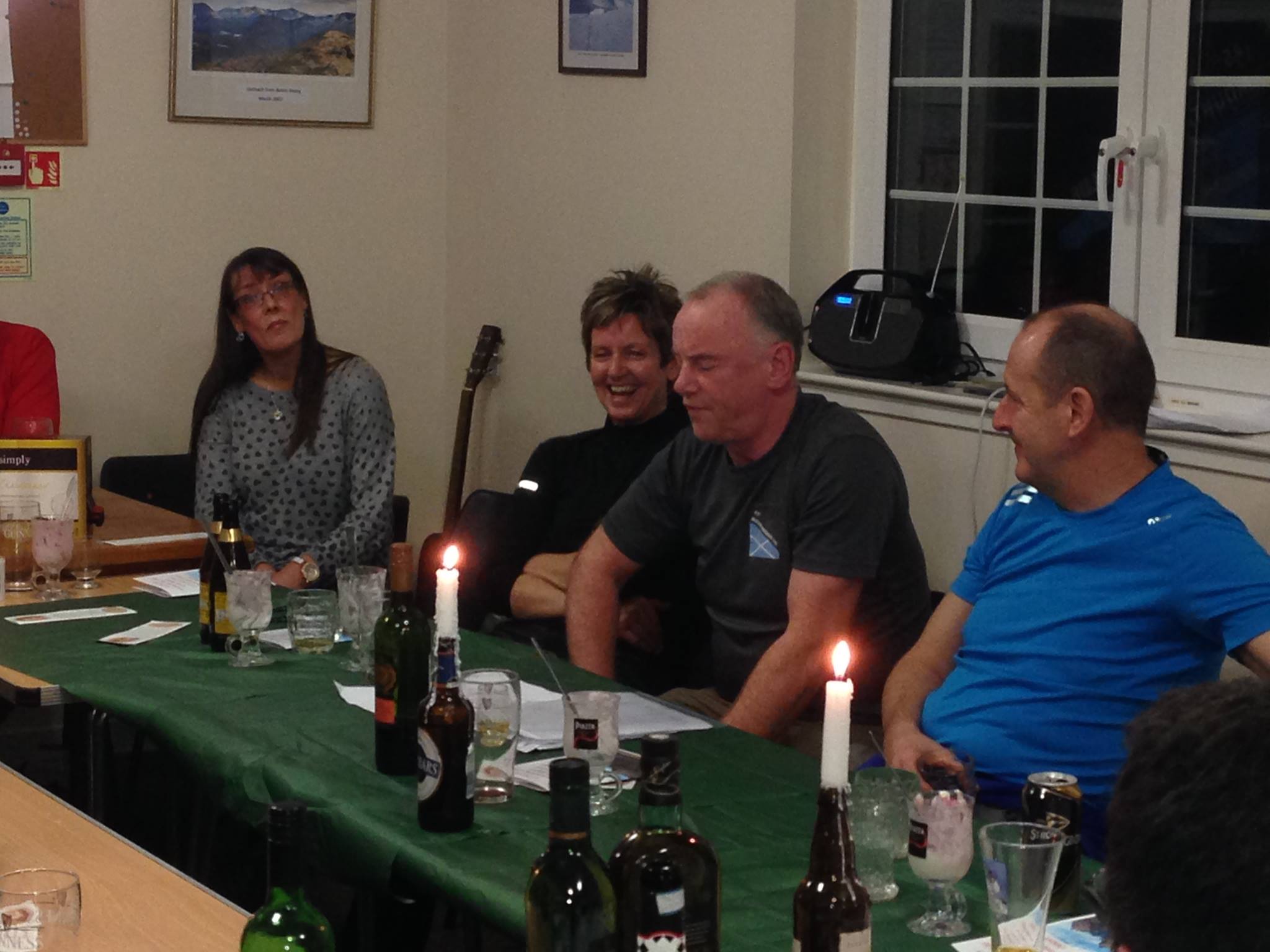 The “Reply fae the Lassies” from Rowena proved to be another highlight of the evening. She had been consulting the rhyming dictionary and had come up with a poem in response that was truly delightful and humorous. There were references to lost trousers, lost hillwalkers and lost Cuillin summits as the male members of the club were, each in turn subject to some gentle ribbing – but delivered in an affectionate (we think!) way.