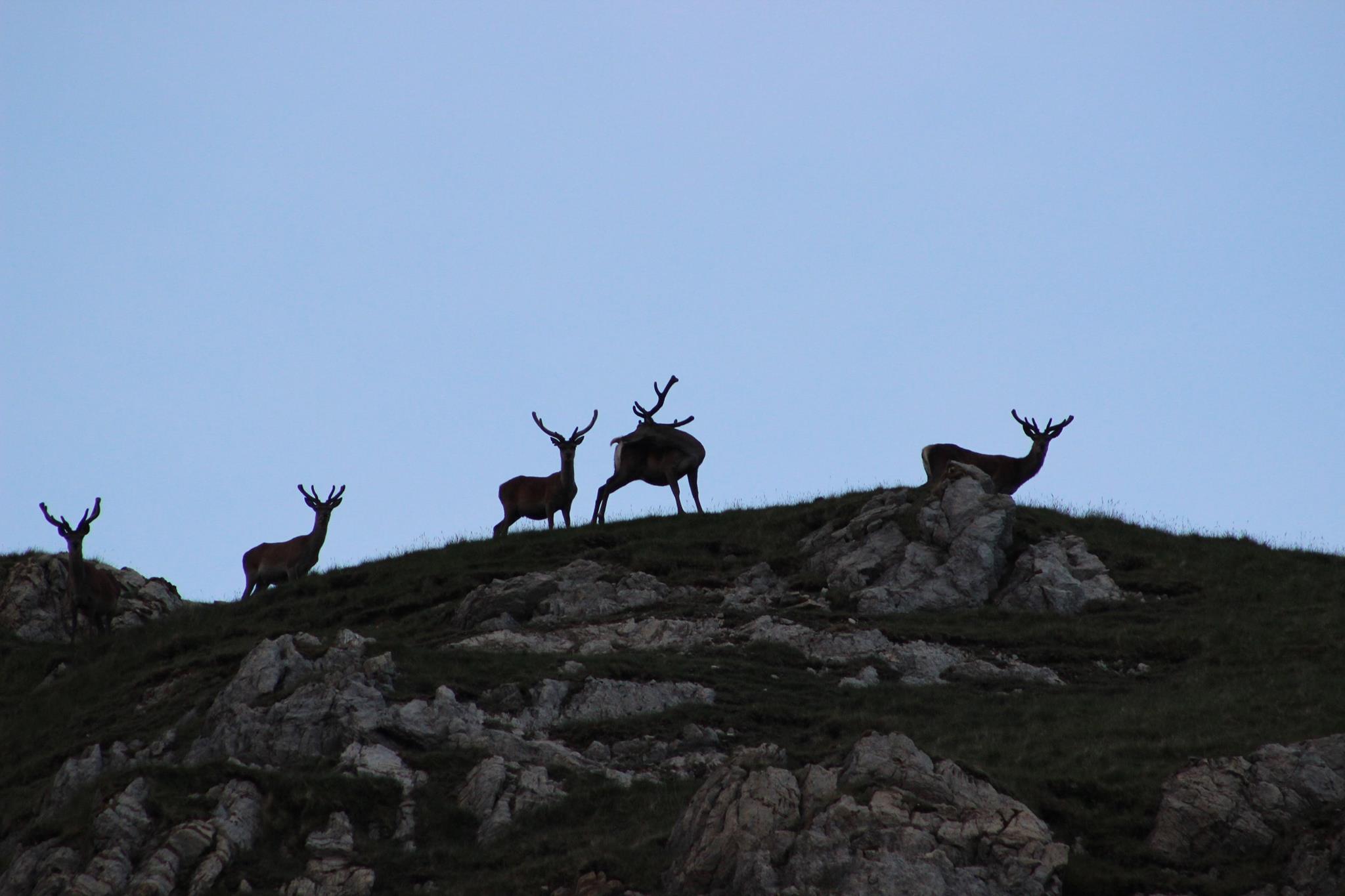 Back in the hut, during the evening the party made their usual good job of replacing spent calories – and then storing up a few more for future use. The two SMC members had decided that they wouldn’t be spending the Saturday night in the hut after all, so with the curfew lifted a few songs were belted out taking the group into the early hours. Even more entertaining was the visitation from a group of young stags on the hillside above the hut and the glorious sunset over Suilven.