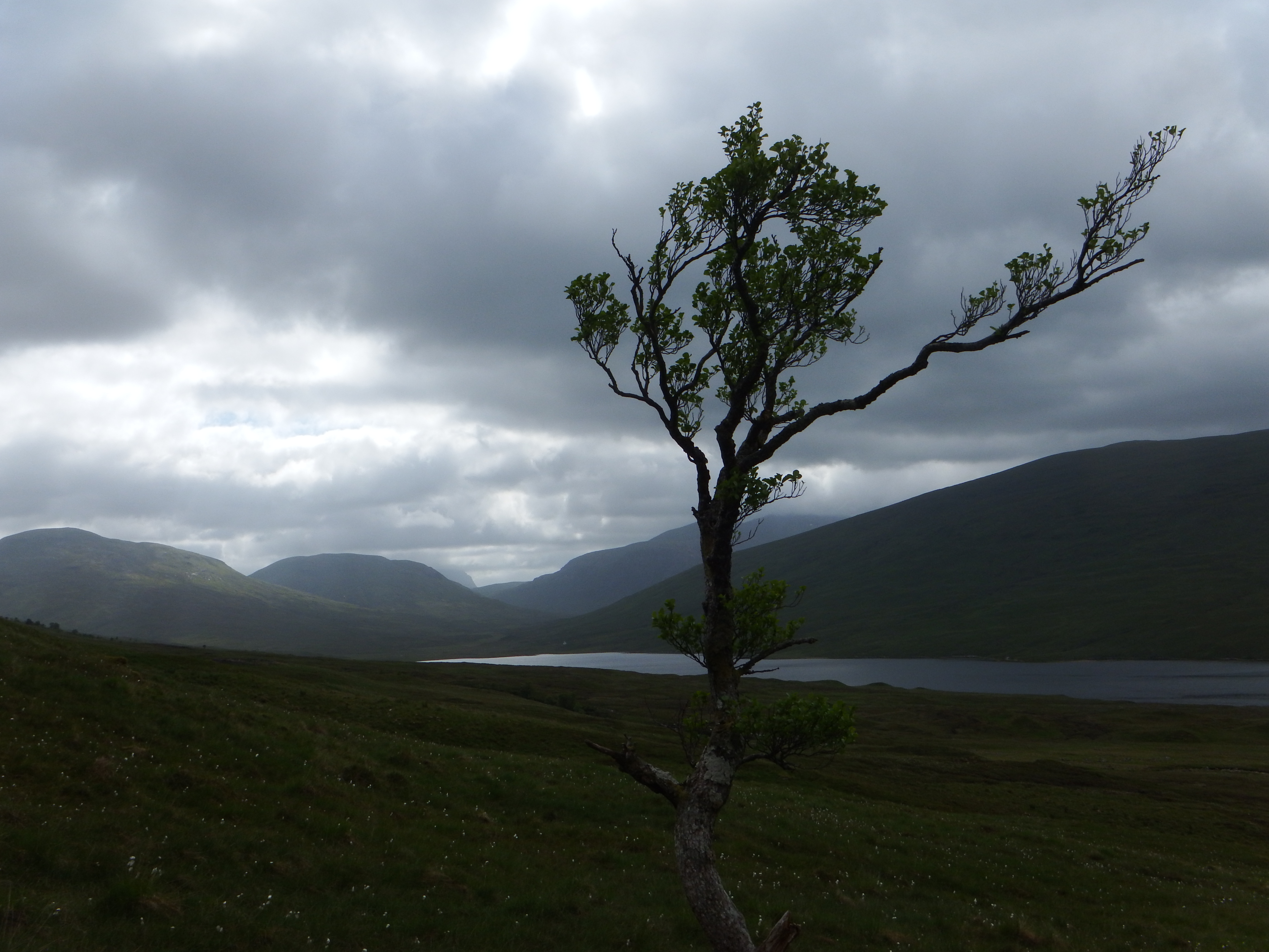 On Sunday morning George, Susan and Norrie headed down the road while Raymond stayed up the North west for a few days R&R.Rowena and Ally though headed (on their bikes once again) into Fannich Lodge and on up the Eastern Fannich Munros of Meall Gorm and An Coileachan. The weather was less kind on Sunday but nevertheless they enjoyed their scoot up these two hills – bring them both ever closer to completion of their Munros.