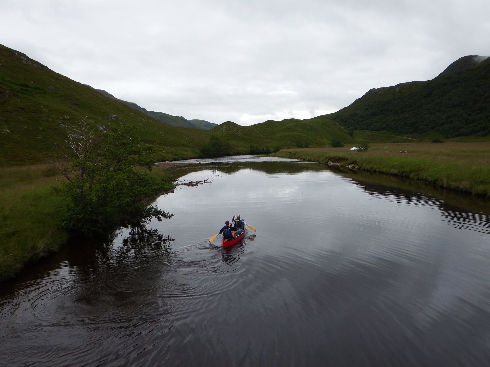 A couple of hours after the group arrived at the hut, a couple of dodgy characters were spotted through the window scrabbling around in the undergrowth by the river. On closer inspection it turned out to be Raymond and Jim who had paddled the length of Loch Affric in Raymond’s canoe and were now in process of lugging it up to the hut. Without a doubt, theirs was the finest approach to Strawberry Cottage – despite the canoe sitting very low in the water due the extreme weight of “essential supplies”.