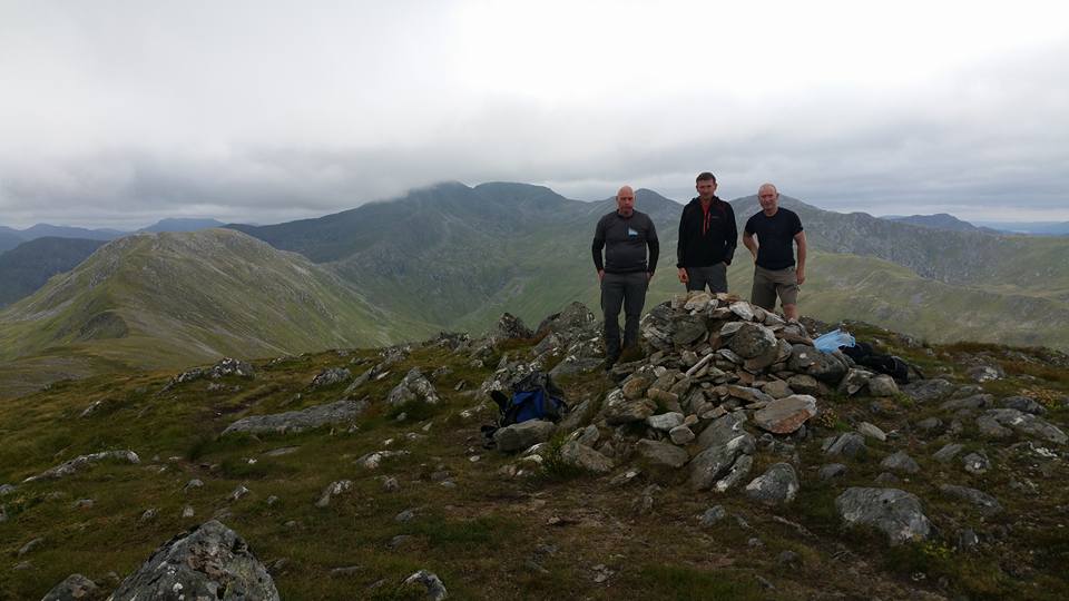 The remainder of the group – Jason, jim, Neil and Raymond had their compass pointing west as they set off for the magnificent bulk of Sgurr nan Ceathreamhnan and its Munro neighbour Mullach na Dheiragain. Raymond also had his sights set on the fine little Corbett of Sgurr Gaorsaic which sits above the lochs that feed into the Falls of Glomach. It didn’t take them long to stride along to Alltbeithe Youth Hostel, the point at which the bearing was changed to North and they set off up the path onto the ridge. Between misty interludes, the extensive views were soaked in and the long trek out to Mullach na Dheiragain was no more than a pleasant stroll, with Raymond having detoured to bag his Corbett.