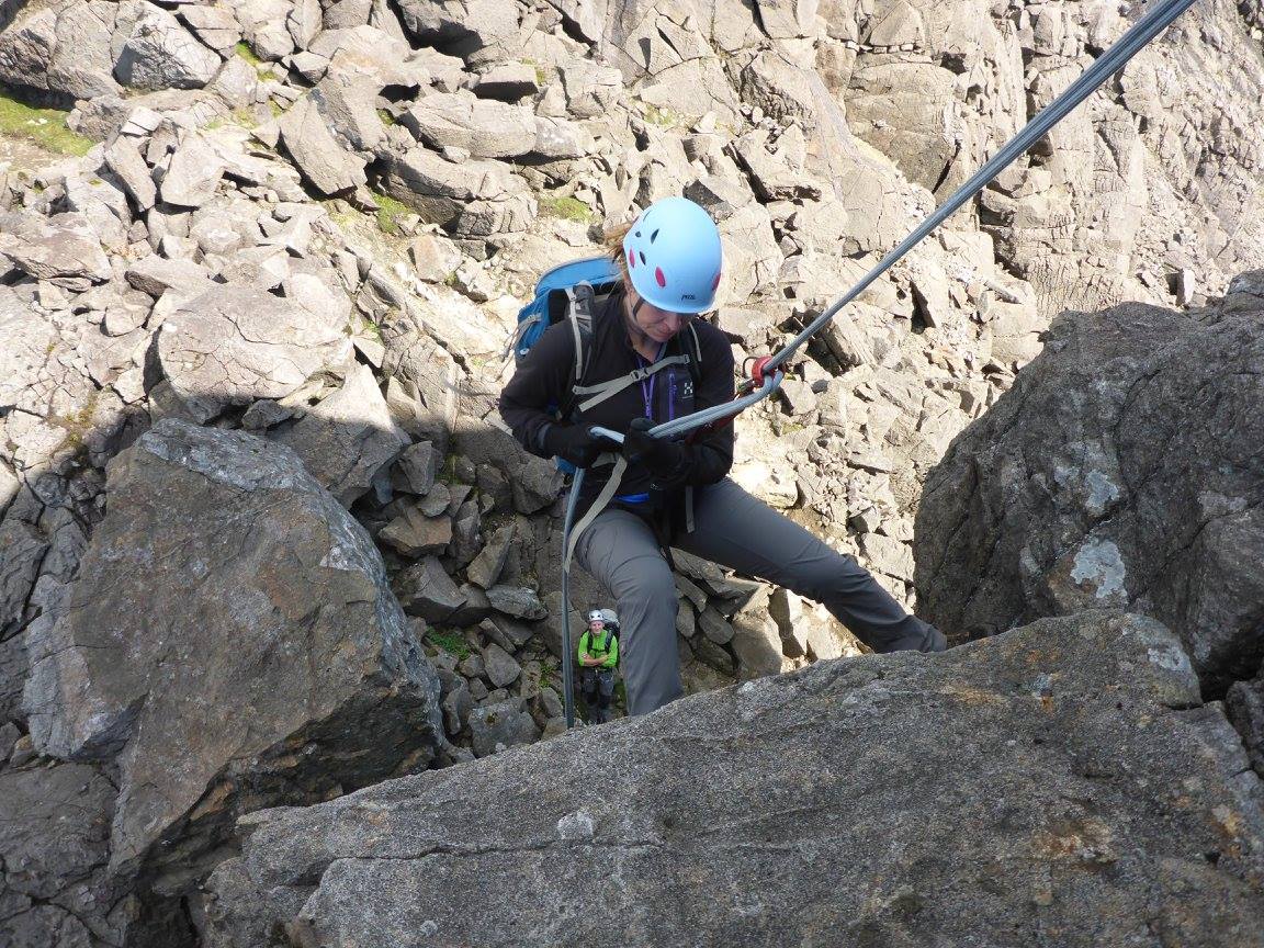 The “Bus Pass Boys” aka James and Norrie were on photography duty nearby and some classic shots were taken of the climb and the abseil off. Spirits amongst the group were high and they were happy with their day’s work and content to return down the ridge back to base.