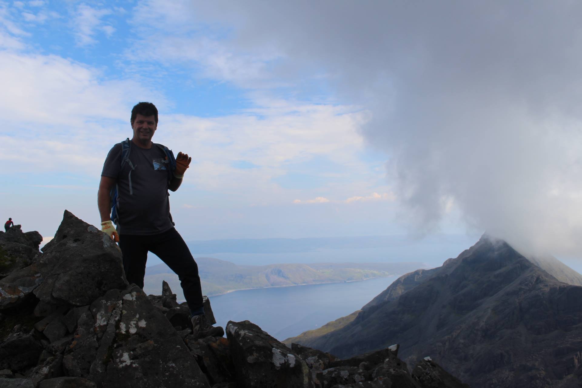 Having made it to the summit of Sgurr nan Gillean though, their day was far from over. Another abseil was required down Nicholson’s chimney enabling them to ascend Am Basteir by its east ridge before retreating and climbing the relatively benign Bruach na Frithe. Elated with the adventures of the day, the group made very short work of the descent to the Sligachan Hotel where a well-deserved cold beer (or two) was enjoyed.