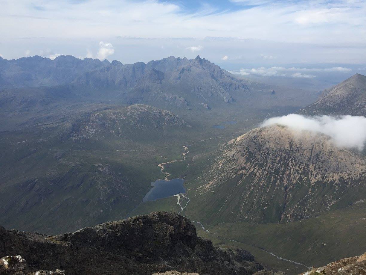 Not to be outdone, Rowena had also headed over to Skye as part of an advance raiding party on Wednesday night and on Thursday she climbed the magnificent Cuillin outlier of Blabheinn, also in glorious conditions. The view from this mountain’s summit is one of the finest in the country with a panoramic vista of the main ridge.