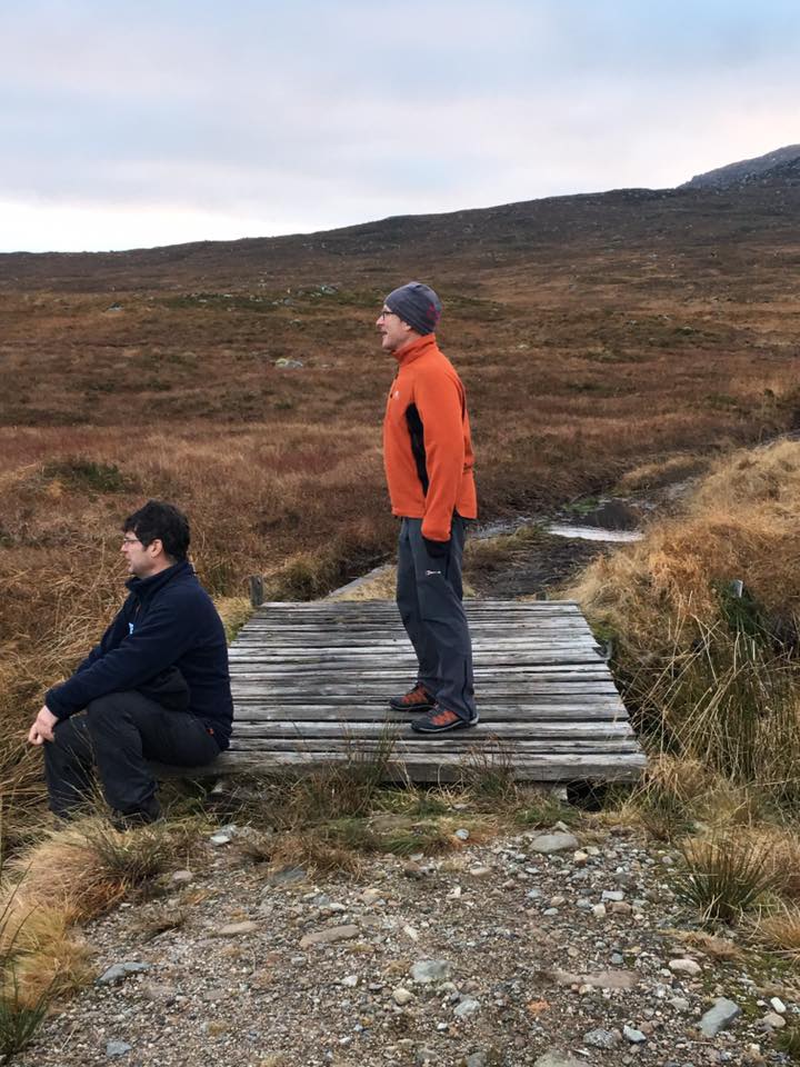 As Ian, Norrie and Douglas strode over to check in at the Hostel, George and Susan had the Corbett of Leum Uilleim in their sights. This Corbett is only just shy of Munro height and is usually climbed directly from Corrour Station. The first 50 metres of the walk is familiar to millions of movie fans from the film Trainspotting and over the course of the weekend there were several attempts to re-enact Ewan McGregor’s famous scene when he describes just what it’s like being Scottish!