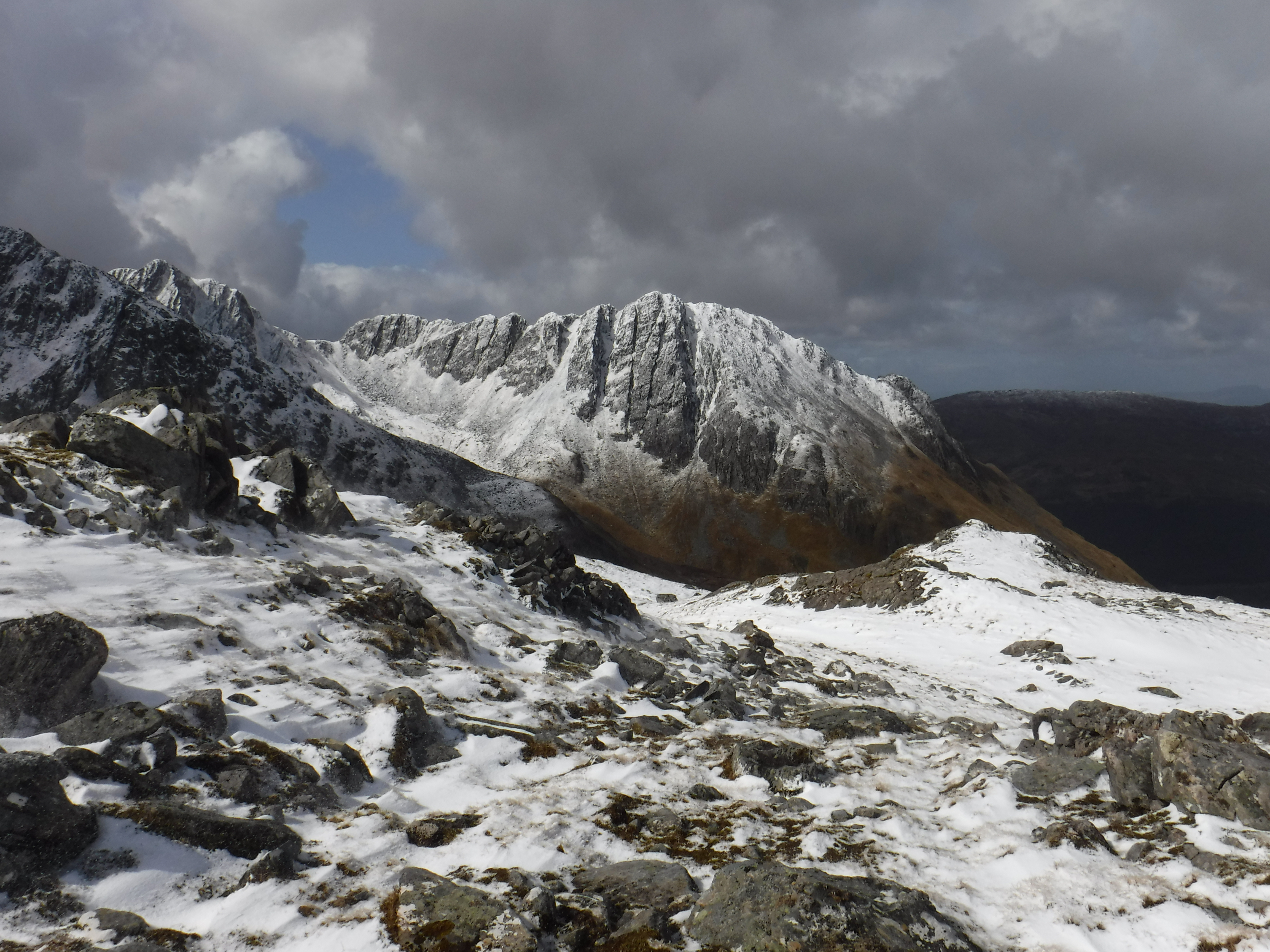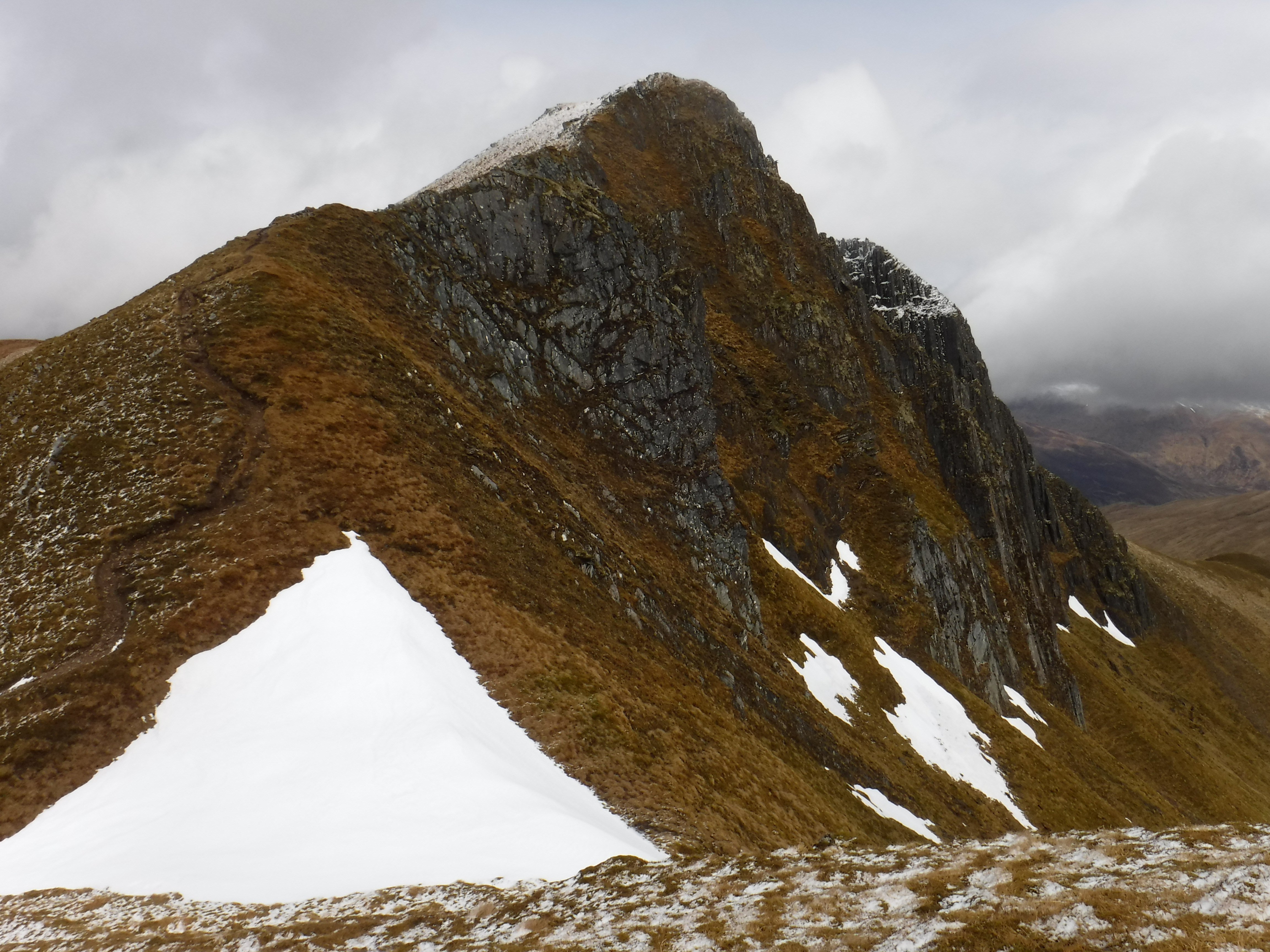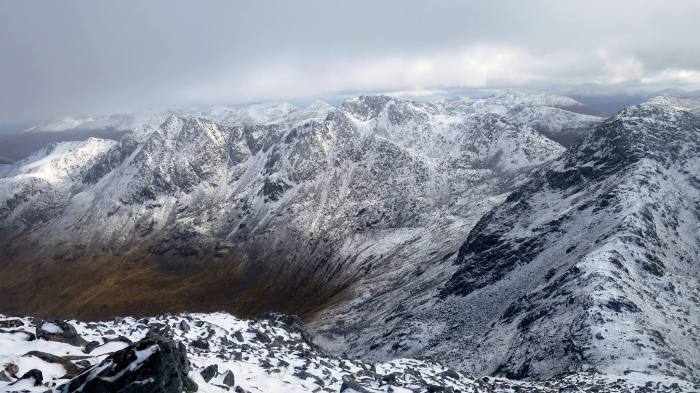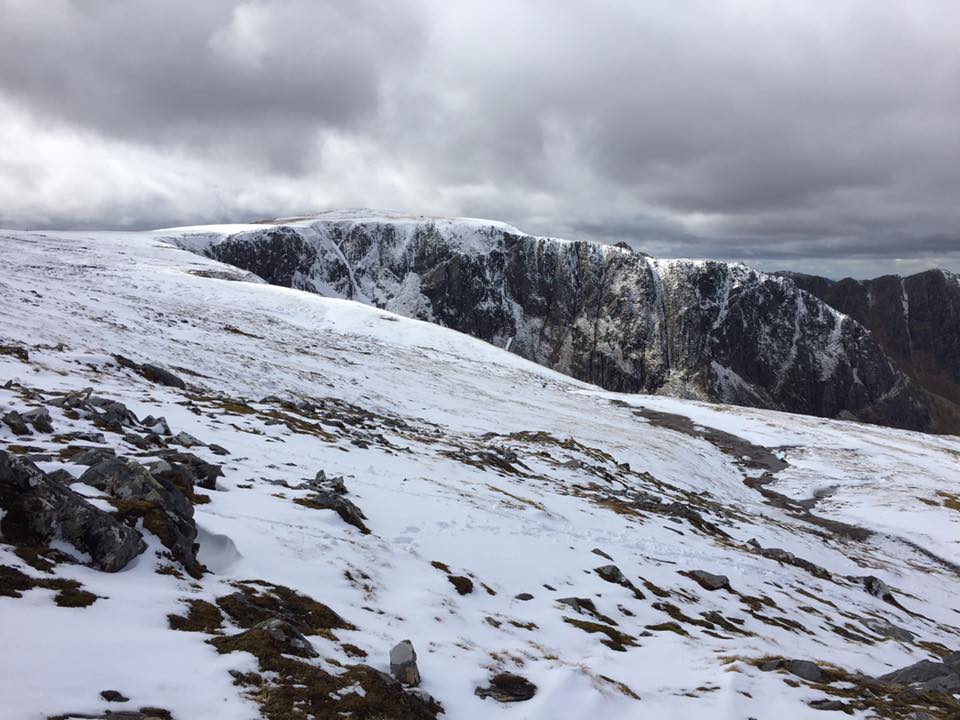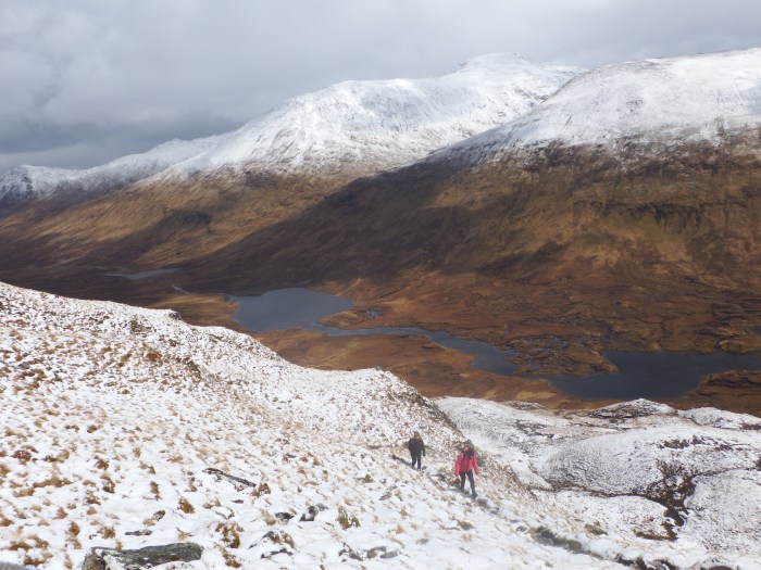 Ally and Rowena had snaked their way west on Saturday in their sparkling new van. Following in George and Susan’s footsteps from the previous day, they too romped up Am Bathach before edging further in their quest for Munro completion by continuing to Ciste Dhubh.