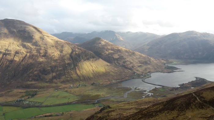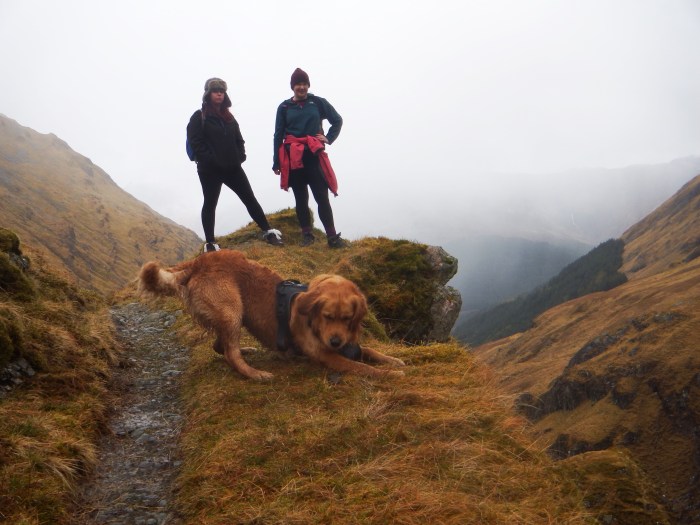Norrie had tempted his family with the prospect of a meet in luxury accommodation – relatively speaking – and on Friday they meandered their way north west via Glenfinnan, Morar and the Skye ferry, then back along Loch Duich to Morvich. Also on board was the keenest hillwalker in the party – their young golden retriever Slioch who was champing at the bit to add to his munro bagging tally. His accommodation was less luxurious than the others though as he was confined to sleep in the back of the car due to NTS rules.