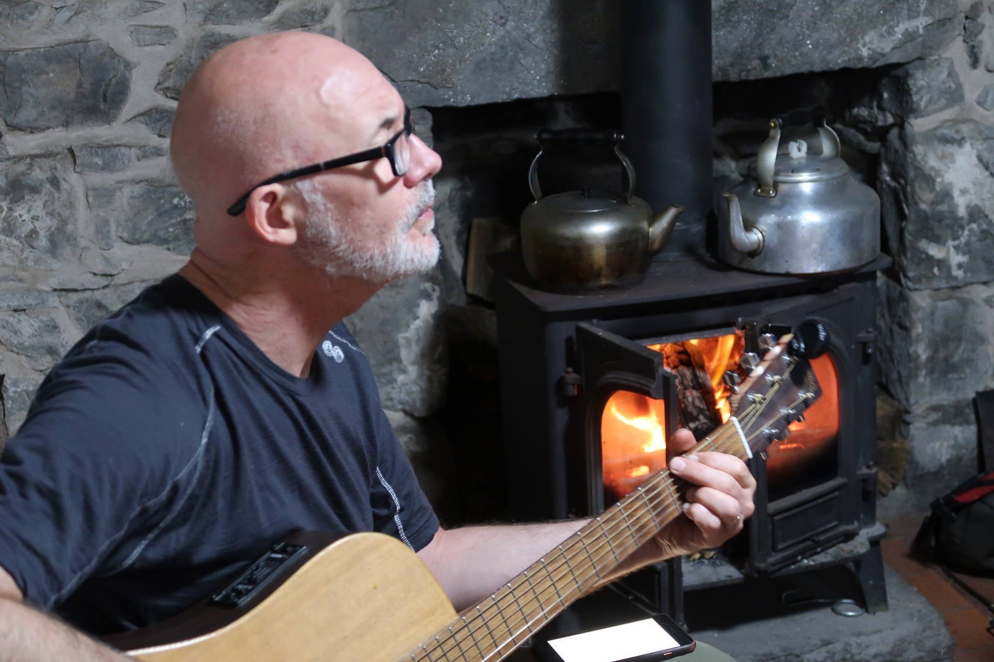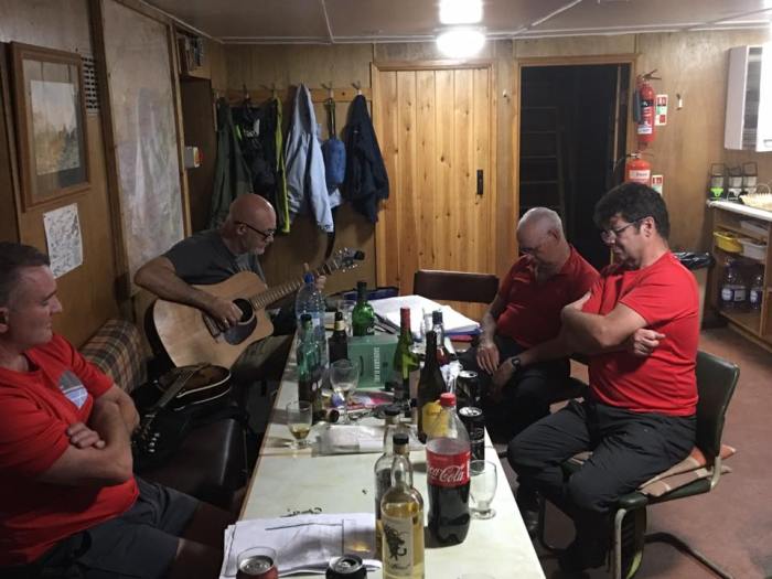 Later in the evening as the four mountaineers returned and suppers were cooked and eaten, a pleasant but low-key evening followed. With Norrie’s mojo still lost in Gleann na Ciche, it was up to Gerry to provide bit of background music.