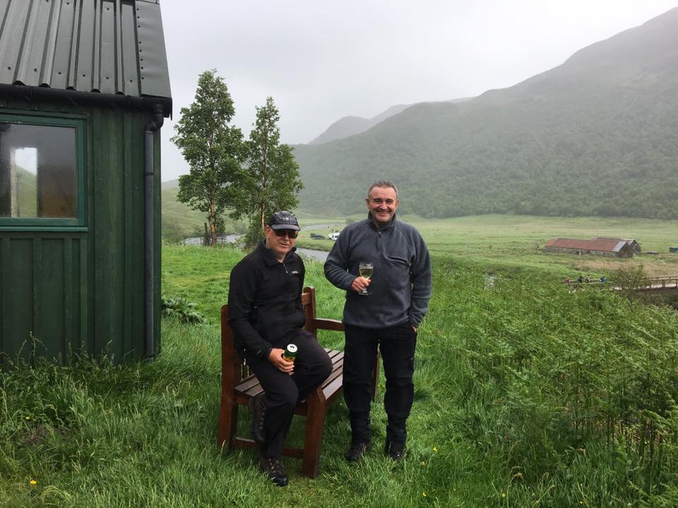 The Club’s June meeting was a return to the superbly located Strawberry Cottage, leased from Forest Enterprise by the An Teallach MC and sitting in what is a normally serene location five miles from the nearest public road at the western end of Loch Affric in beautiful Glen Affric. Nevertheless, the hut boasts electric (solar powered) lighting, gas cooking facilities and a wood burning stove. 7 members attended the meet: