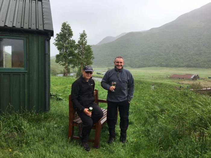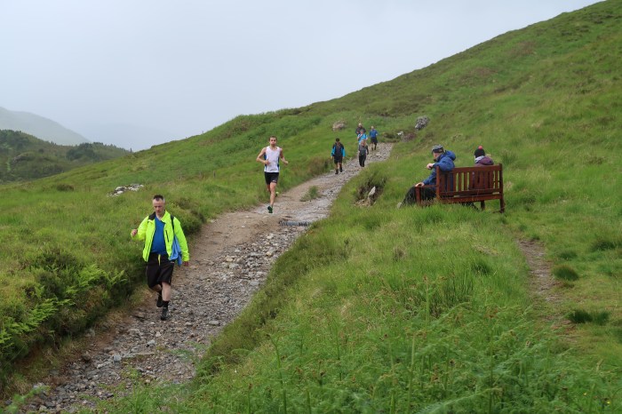 On their return, the Highland Cross event was in full swing with a few walkers having passed the hut on their way eastwards as the elite runners (who had started a couple of hours later) began to race past. A bench was hauled over towards the track and the three had a hugely entertaining couple of hours as the walkers and runners passed them in various states of euphoria and distress. Of course, as it was now afternoon, the bar was officially open and the tormented mood of some of the participants wasn’t eased in the slightest by the sight of three jokers sipping their refreshment and calling out their “encouragement” as they passed.