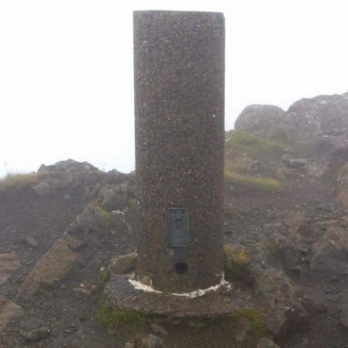 The final pair to venture into the hills on the Saturday were Ian and Ian. Blaven was their objective and they drove round to the Elgol road to tackle the peak from the east as Jim, James and Blair had done on Friday. Despite the nasty conditions, they encountered no problems in completing their ascent and although there were no great views from the summit, the obligatory selfie was taken with the circular trig point once again prominent in the shots.