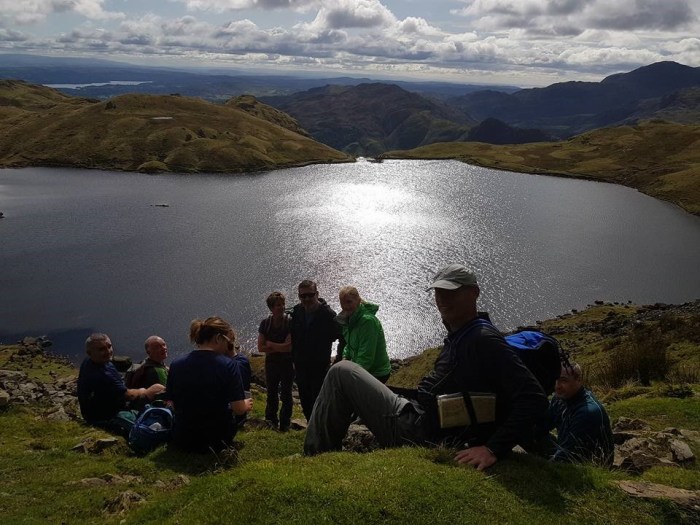 This months’ meet took us over the border to the Lake District where Fylde Mountaineering Club’s hut was to accommodate The 45 over the weekend. At full capacity the hut was a tad cramped but the ample kitchen and toilet facilities ensured an enjoyable stay. A rota system to the nearby Three Shires Inn also allowed a bit more breathing space.