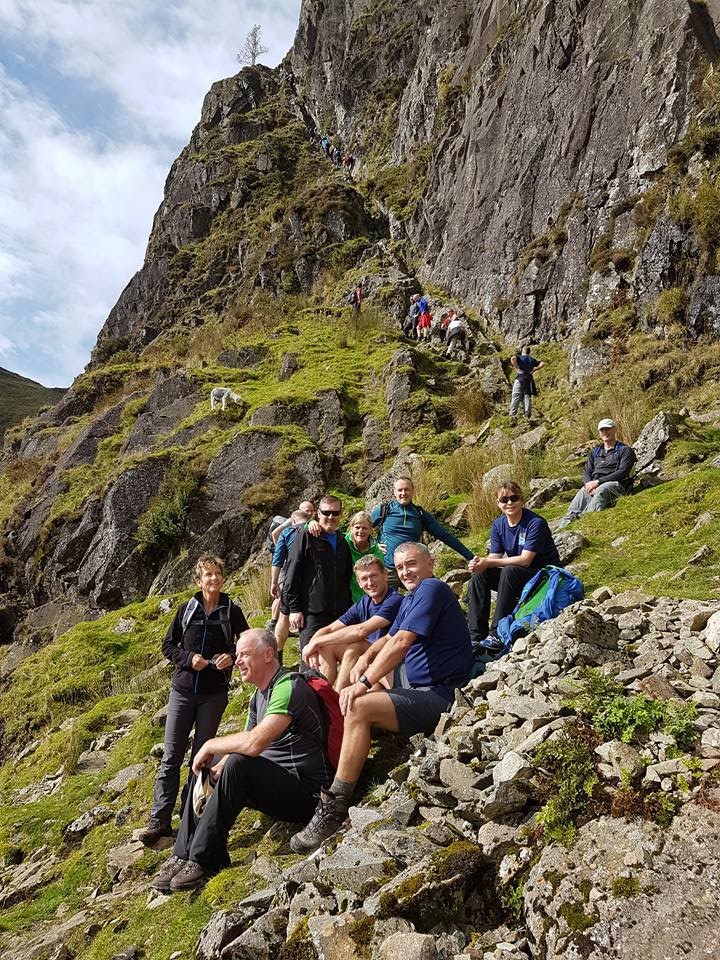 Paul, Raymond, Neil, Ian M, Jason, Rowena, George, Susan, Chris, Mandy, Mike and Marie all opted for Jake’s Rake, a scramble of note. after a little way Magic Marie, feeling a bit delicate from the previous night beat a retreat back to The New Dungeon Gyll. The rest continued to Pavey Arc where Raymond and Rowena cut off for Bow Fell then back to the Old Dungeon Gyll. The rest headed for Harrison Stickle where George and Susan wandered further to collect more Wainwrights . Ian Millar went his own way to Seargent Man, High Raise, Thunacar Knott, Pike of Stickle, Left Crag and Harrison Stickle. Chris and Mandy, I’m reliably informed, took a short detour to do a spot of caving, hopefully a pleasant experience and not too damp.
