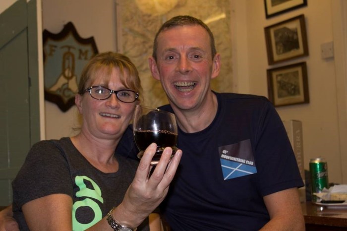Eventually everybody arrived back at the hut and after some tight parking manoeuvres settled in for the evening. James and Donna heading up for a meal in the Three Shires Inn, being joined shortly after by the two Ians Neil, Alan and Jim. Some entertainment was provided by Alan by showing off his amazing tumbler balancing skills. This group eventually struggled back down the pitch black lane to the hut, the way only illuminated by one torch which luckily Ian P had put in his pocket.