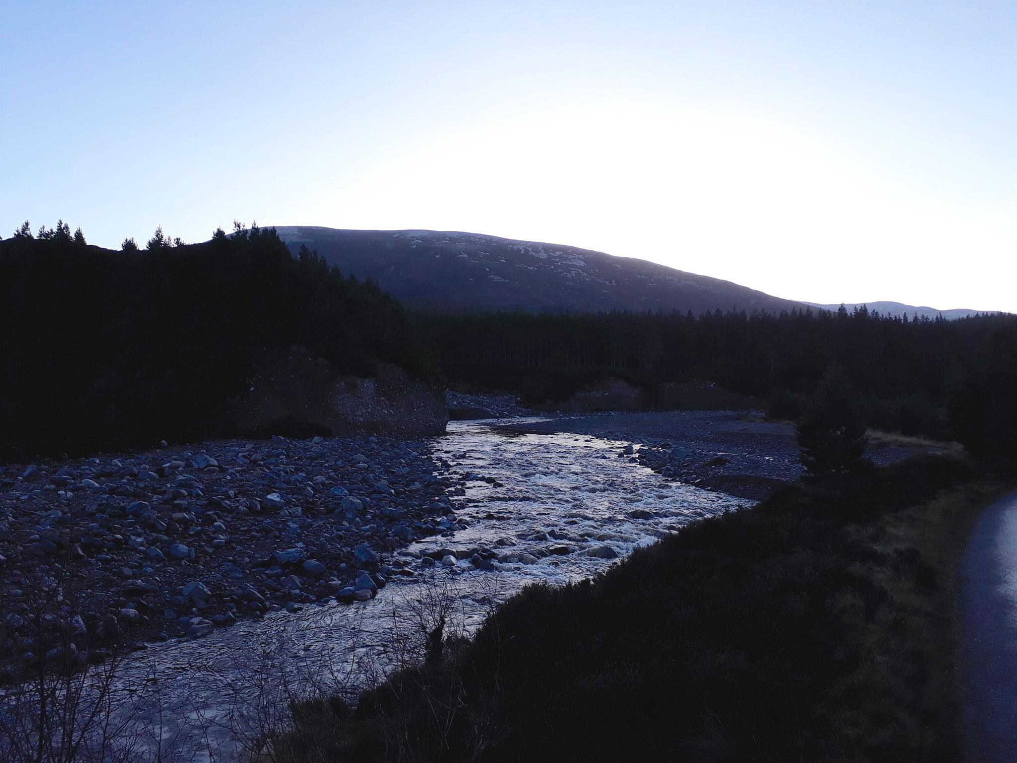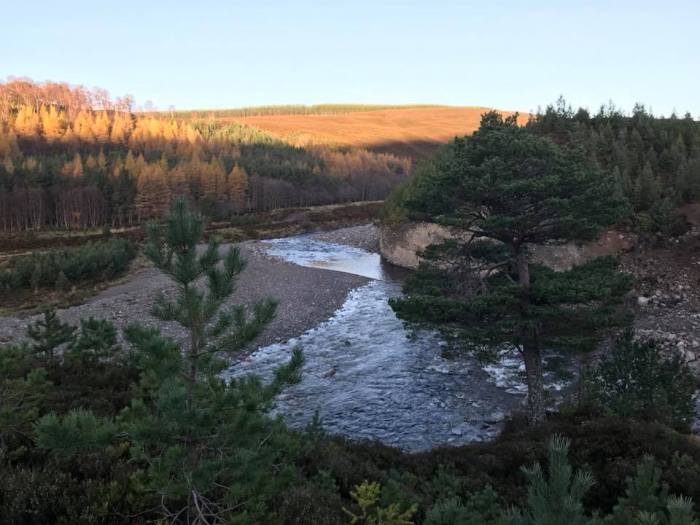 James, Neil and Ian decided they were heading for the more southerly Glen Feshie Munro, Mullach Clach a Bhlair. They parked their car a few miles down the Glen at Auchlean and headed south along the banks of the River Feshie where the extraordinary impact of some ferocious recent erosion was evident. Their initial target was the bothy at Ruigh Aiteachain which is currently being extensively renovated by Glen Feshie estate. They were hugely impressed by the work that was being done elevating the bothy to 5 star standard – but were a bit cynical regarding how long it would remain an open shelter.