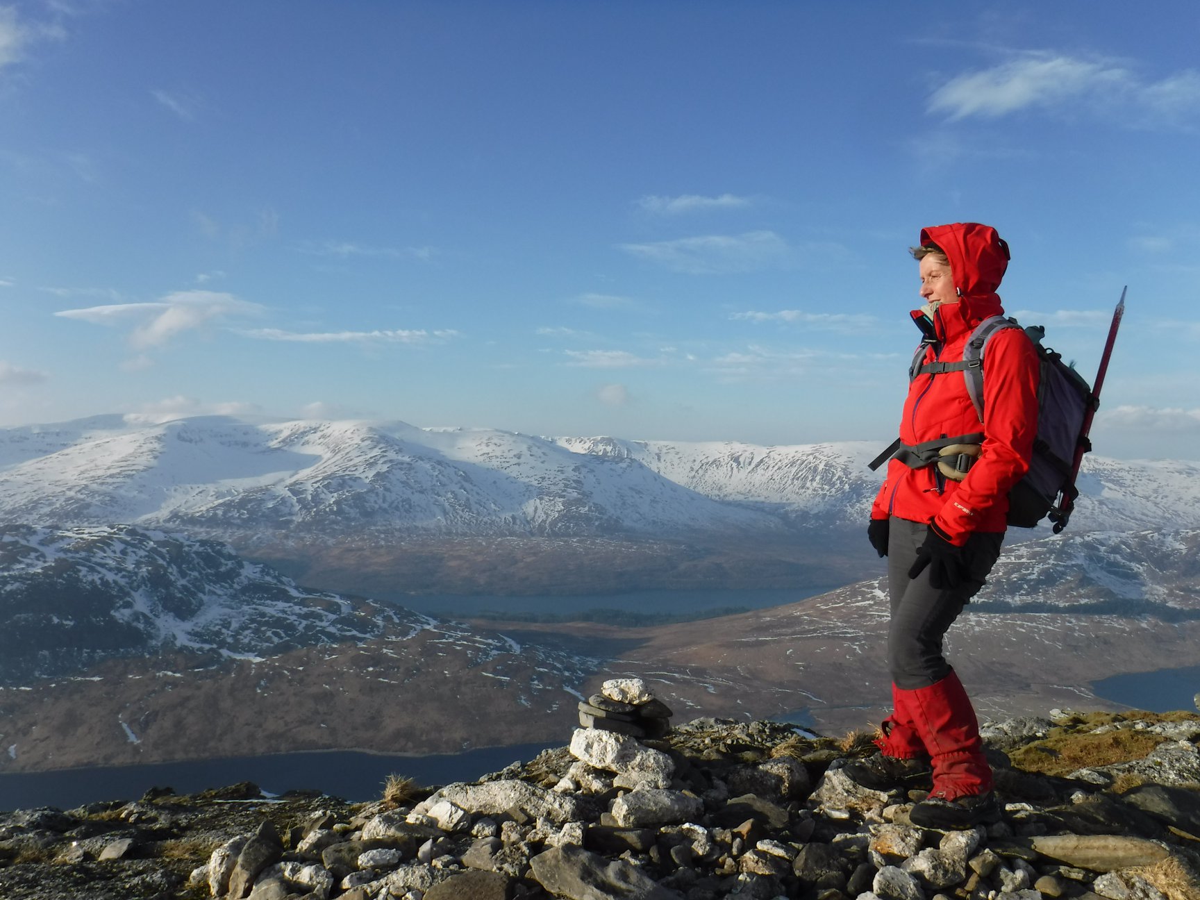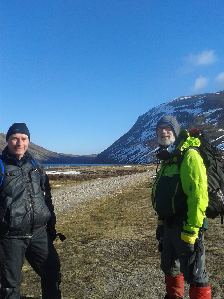 Sure enough, after the initial obligatory wander down the wrong track for a few hundred metres, the group were soon caught up by Lorn before they reached the shores of Lochan na h-Earba – a glorious location with patches of snow decorating the sandy beach lining the lochside.