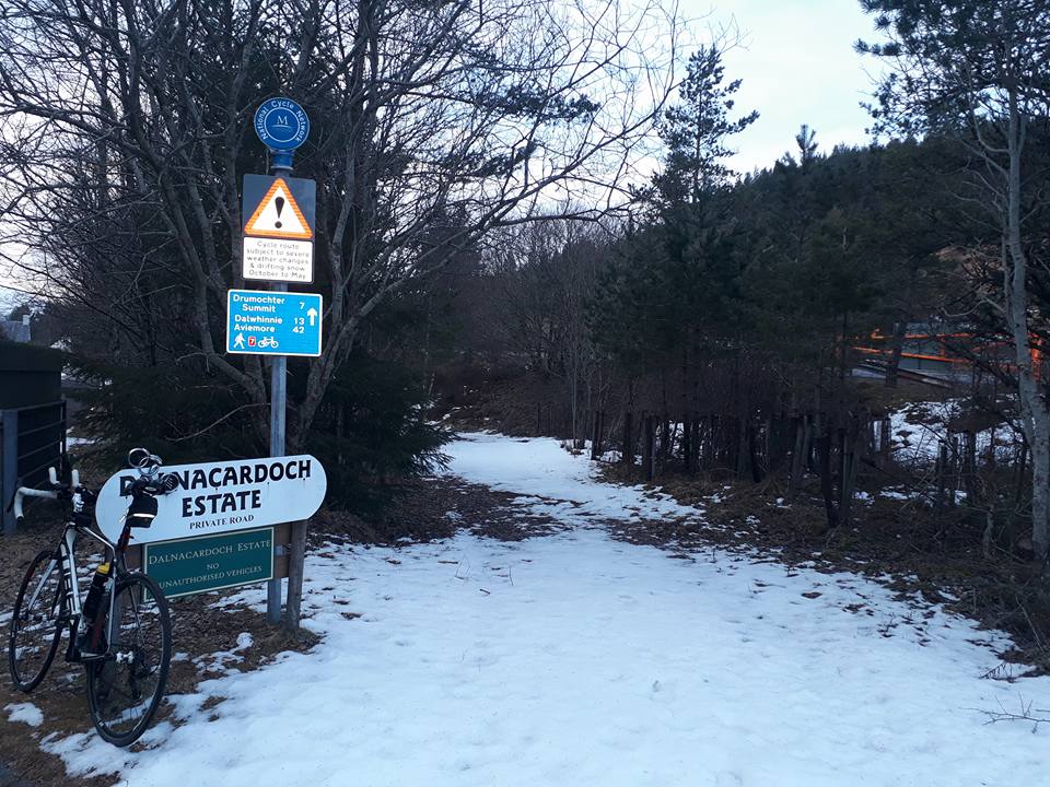 While all this was going on, Raymond was making an ambitious and adventurous commencement to the weekend by attempting to cycle directly to the hut from his home in Falkirk. The first part of the journey was very enjoyable with some great views opening up on the back roads heading north. Eventually though he was thwarted after a mere 83 miles as, 7 miles short of the Drumochter summit at Dalnacardoch, deep snow on the path prevented further progress on the bike. Fortunately, a white knight in the shape of Paul was on his way north at Perth and was able to stop and pick up him and his bike and continue north to Balgowan.