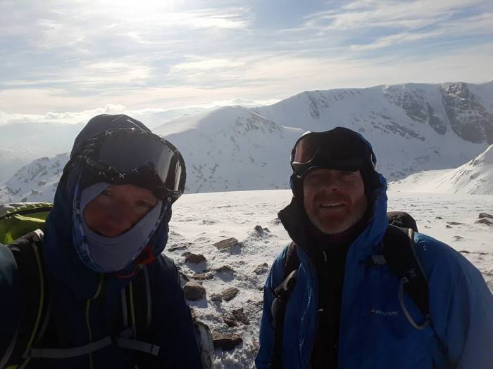 All three made sure every single item of clothing in their bags was donned before turning and heading directly back down the slopes with a decent pace being set to take them down below the worst of the gales.