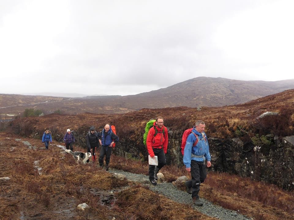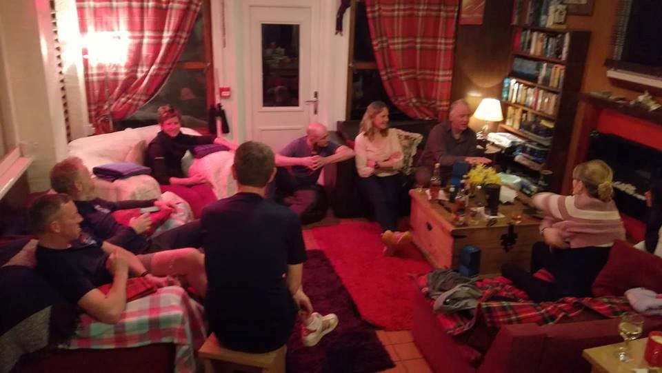 Eventually all arrived at the bunkhouse and after introductions were made, rations consumed some got set for a night of socialising. Others who had come straight from work and fatigued by the long drive opted for an early night especially the ones who were coerced by the clubs leading navigator into an early rise for an attempt on a Munro. A wee crisis arose when our French guests Caroline, her daughter Ines and friend Christine locked the door of their Wigwam leaving the key inside. Unable to contact the owner James and Marie attempted to pick the lock, open locked windows, trying every other key people had before trying the obvious, looking for the spare key under the flower pot, and lo and behold it was there. Twenty minutes wasted in the pouring rain.