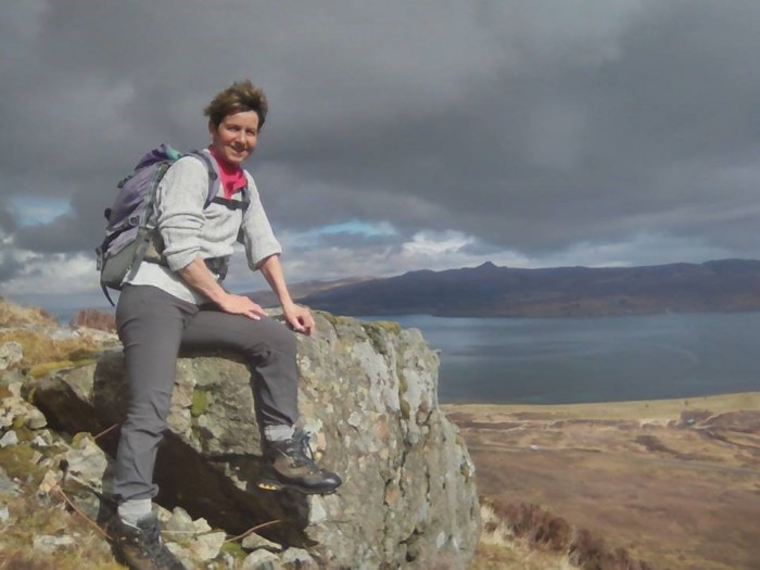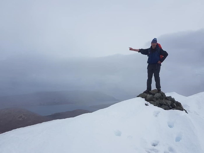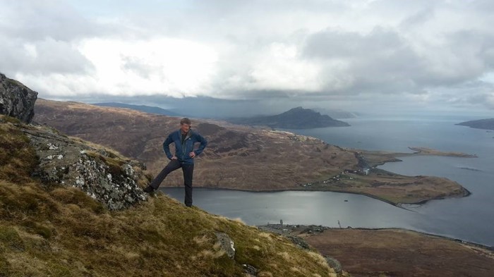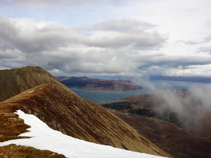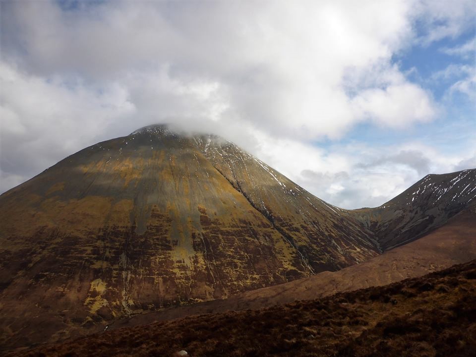 George, Susan and guest Rob Waitt’s Friday adventure was to scale the Clach Glas – Bla Bheinn ridge but after assessing its winter condition opted for the Corbett Garbh Bheinn. This was Rob’s first taste of Scottish hills and it seems he was caught under their spell and will be lured back again