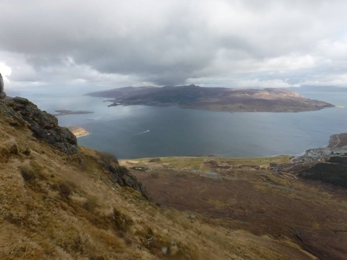 On Friday Lorn, the only one not to use the Bridge crossed from Glenelg to Kylerhea on the Highlands’ last working turntable ferry, he then ascended Ben Aslak, a sub 2000 hill then continued in the rain over Ben Buidhe at the North end of the Trotternish ridge with views to the Quiraing. Despite the poor weather conditions some spectacular photos were taken.