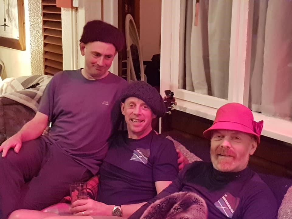 James Alan and Gerry decided to help the local economy and went to the Hotel to sample local brews. A bizarre surreal scene met this trio on their return. A cross between The Mad Hatters Tea Party and a meeting of the Eddie Izzard appreciation society was in full swing, with Ramond on guitar and Gerry on mandolin. Hors d’oeuvres were made and served by Marie who also acted as host in a hilarious game of Play Your Cards Right complete with bonus prizes showcased by “Alana Orifice”