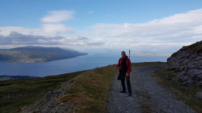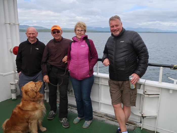 The Corbett of Dun da Ghoaithe rises just behind Craignure Bay so a few of the group took the opportunity to ascend it in fine conditions, firstly George and Susan on their quest to repeat all the Corbetts, then the four fastest legs in Lancashire (aka Mike and Jason) shot up and down in record time while Rowena made her ascent at a slightly more leisurely pace.