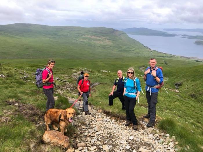 The rest of the group returned by their route of ascent, warming up nicely as they returned to the vehicles. Despite the lack of a view and the dampness on top nobody confessed that they wished they had stayed behind and joined Debbie and Donna on a tour of Craignure’s charity shop, coffee house and pub.