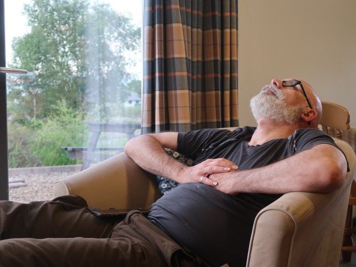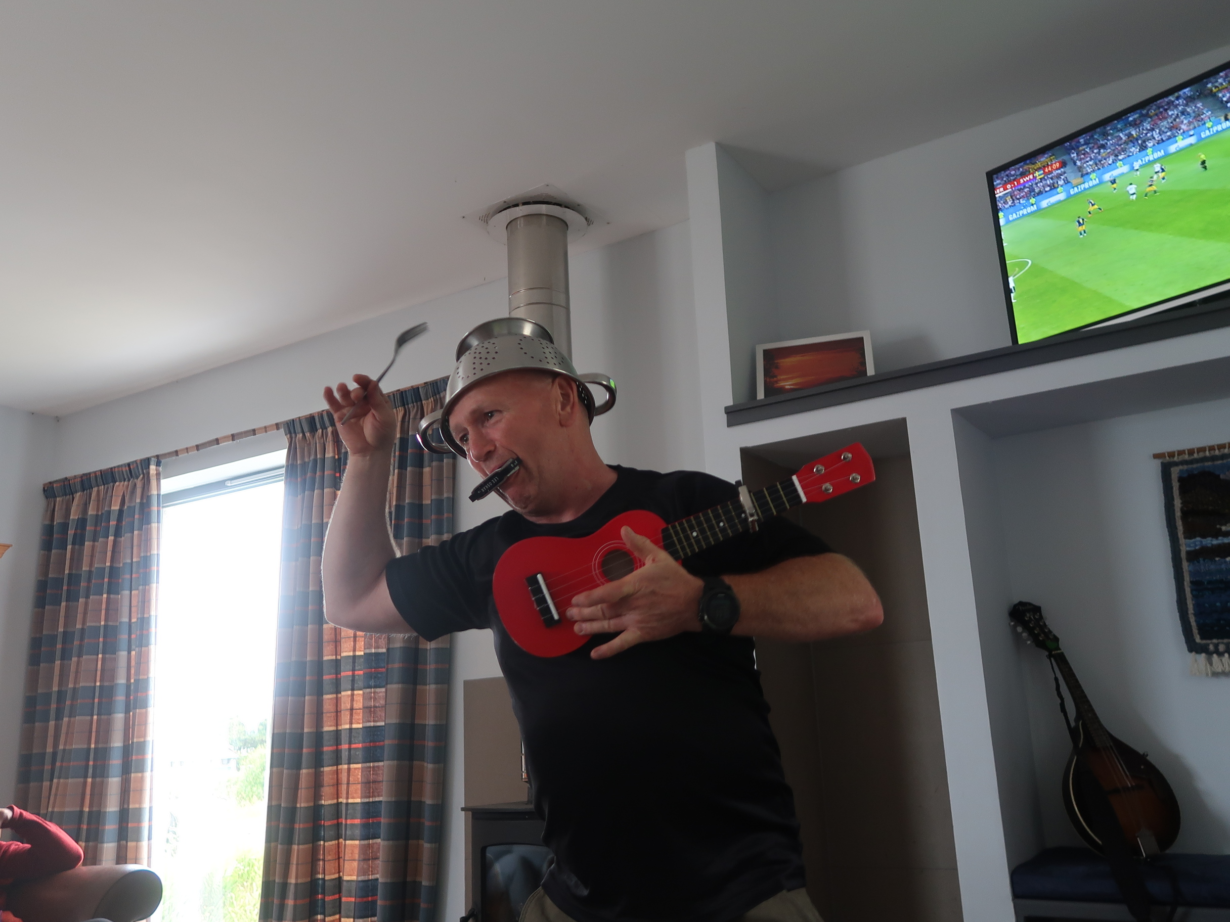 A great atmosphere prevailed later in the bunkhouse once everyone had showered and eaten. Ian’s mega speaker was put to great use as an impromptu karaoke hour followed with Dixie’s Little Red Rooster and Andy’s Leaving of Liverpool amongst the highlights. Never one to let everyone else hog the limelight, Alan’s one-man band impersonation impressed once again. There can be very few kitchen utensils in the north of Scotland that haven’t at some point found their way onto Alan’s barren bonce.