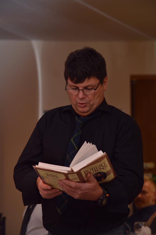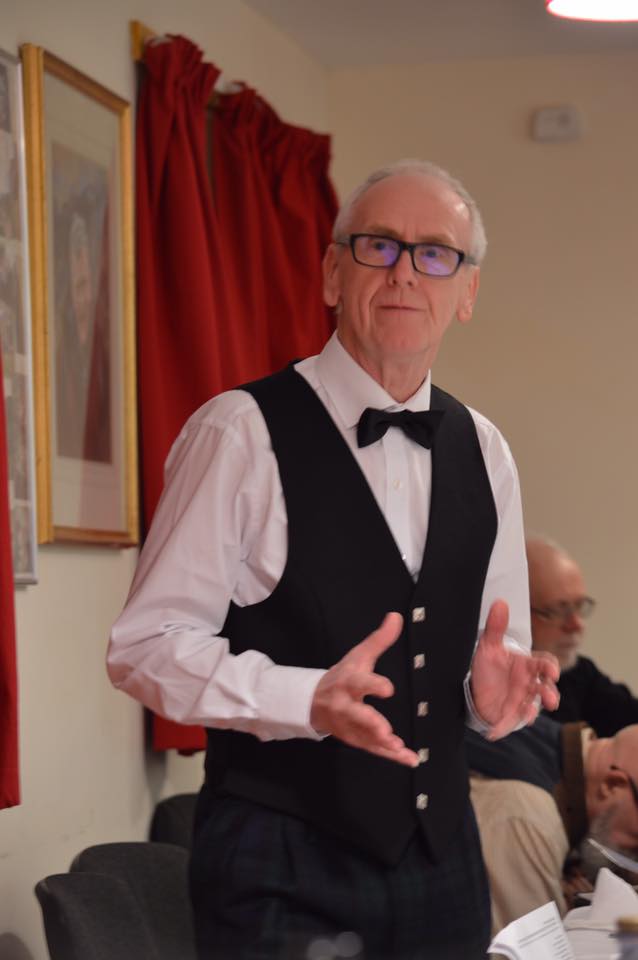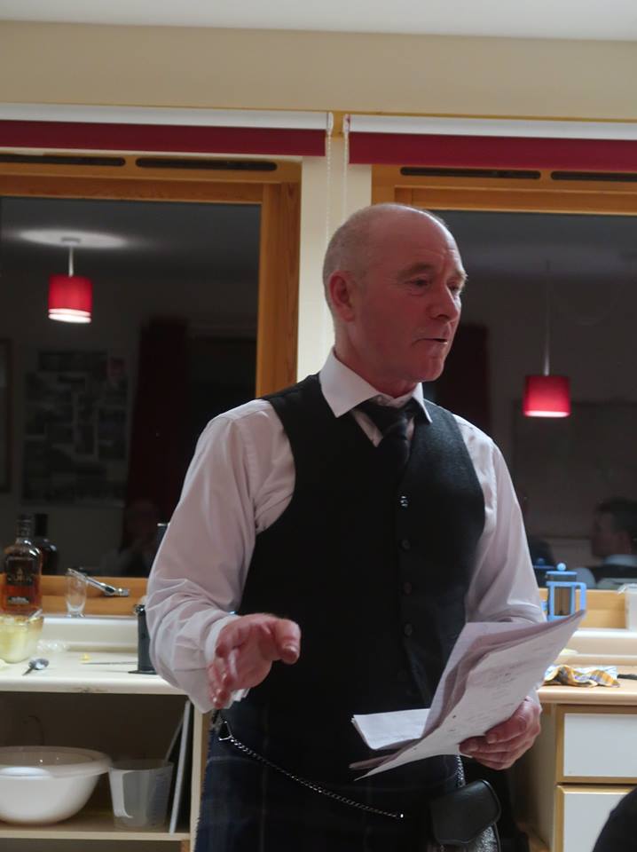 There followed a couple of Burns songs played by Norrie and Gerry before Jim gave a recitation of John Anderson my Jo – with more than a few frosty pows in evidence (James excepted). .Raymond followed up with My Heart’s in the Highlands before Jim gave a stirring rendition of Scots Wha Hae. There was then a few more songs from Norrie and Gerry before the highlight of the evening – the toast to the lassies and the response.