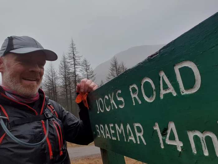 Rather than head for the Munro tops, Lorn decided to go for a run. His route took him up Jock’s Road past the emergency shelter of Davie’s Bourach and up to the summit of Crow Craigies, which at 920 metres is an official Top of Tolmount – so much for keeping low!