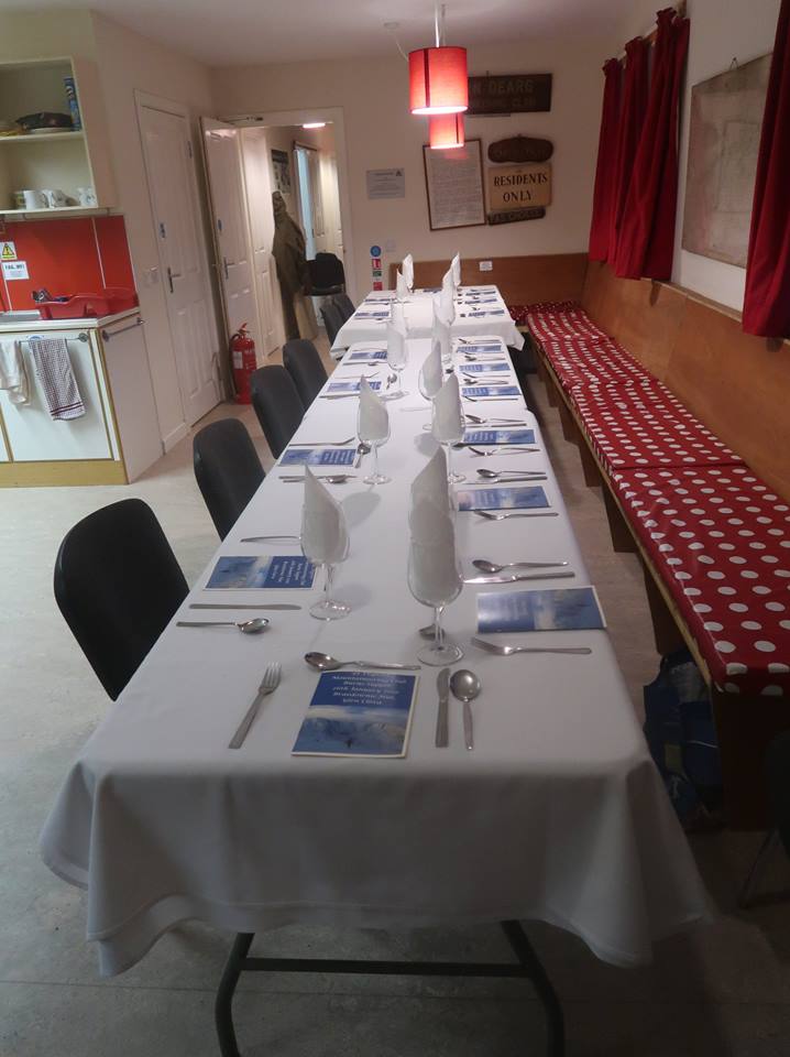 The meal as usual was a great team effort – James had sourced the haggis though he appeared to be under the impression that several squadrons from nearby RM Condor would also be dropping by for supper. George had procured enough tatties and neeps to ensure there would be seconds all round, Jim and Norrie had come armed with great pots of soup. Lorn produced several sacks of bread rolls and Gerry provided some excellent desserts as well as a fine bottle of malt for the toasts.