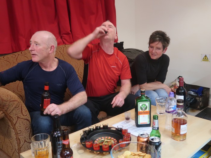 During the course of the evening all the guests and members arrived armed with enough food and drink to ensure that if a heavy snowstorm did arrive, we wouldn’t have to call Mountain Rescue for at least a fortnight. Unfortunately, Bill Dallas – a member of the Braemar Mountain Rescue Team had been called out to aid a distressed walker in the Cairngorms and wouldn’t arrive at the hut until the Saturday morning.