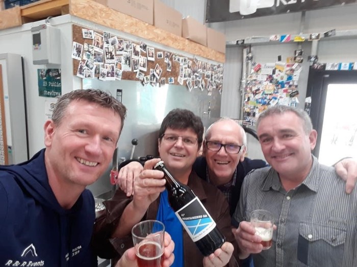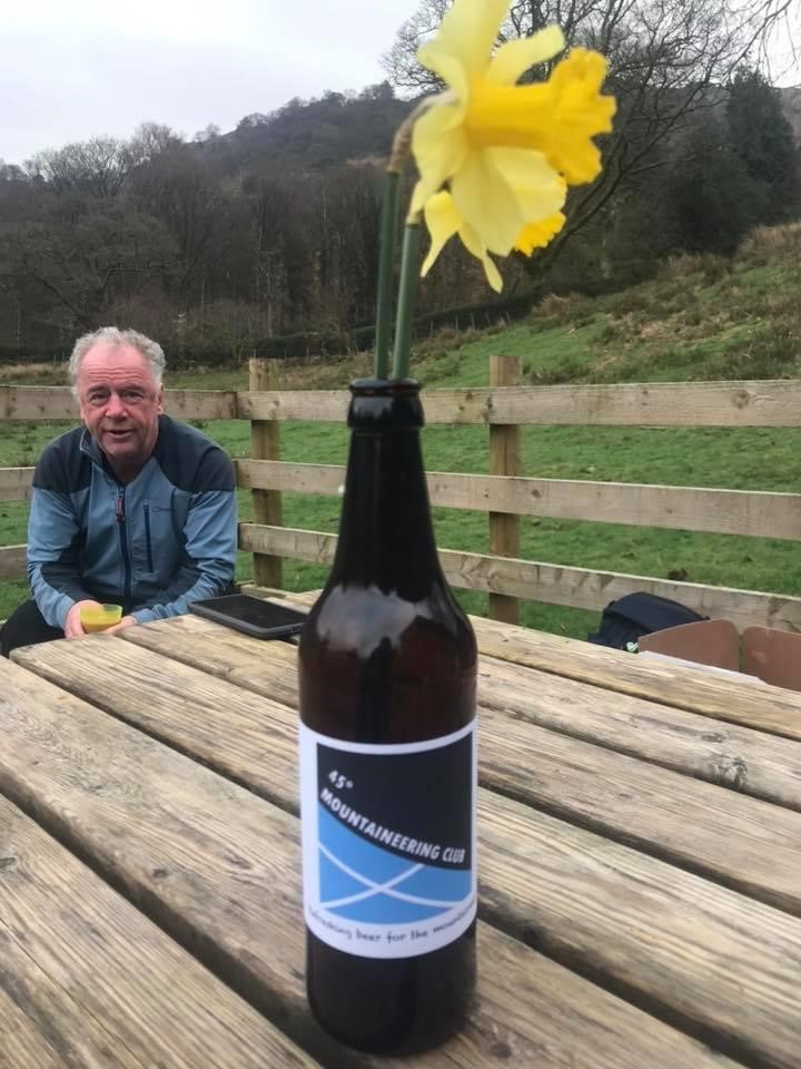 Meanwhile, elsewhere, another plot was brewing! The now (in)famous ’45 Degrees Beer was being expertly bottled at Stewart’s brewery by the crew of Raymond, Fraz, Paul and Jim Hughes. With military precision, no sooner had the first batch been bottled than it was picked up by George & Susan on their way South to Dinah Hoggus HQ, via the Corbett, White Coomb and the Wainwright of Great Mell Fell. Raymond followed shortly after bottling was completed and had time to have a run round the Wainwrights of Souther Fell, Bannerdale Crags and Bowscale Fell.