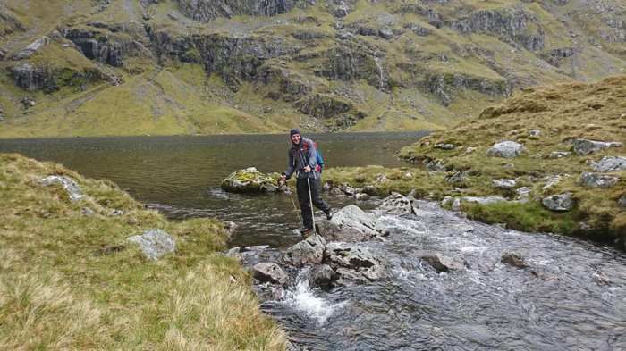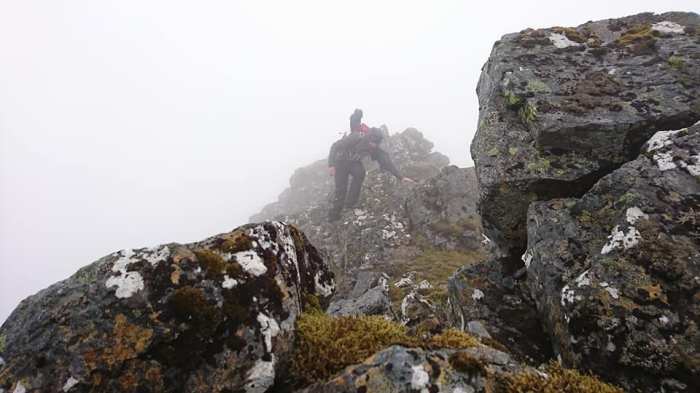 Neil wasn’t able to make it up on the Friday night but an early start on Saturday morning saw him motor north to take on the area’s two Munros, Ben More Assynt and Conival from Inchnadamph. John and Alyn also had a traverse of these two hills on their agenda. A bit of map and compass work was required on Ben More’s rocky summit in order to locate its South Ridge. Here the quartzite they had been on up until this point quickly changed to gneiss. The rain had rendered the lichenous rock slippery as an eel. This combined with a westerly gale blowing gave the exposed wee scramble along this ridge some added bonus points.