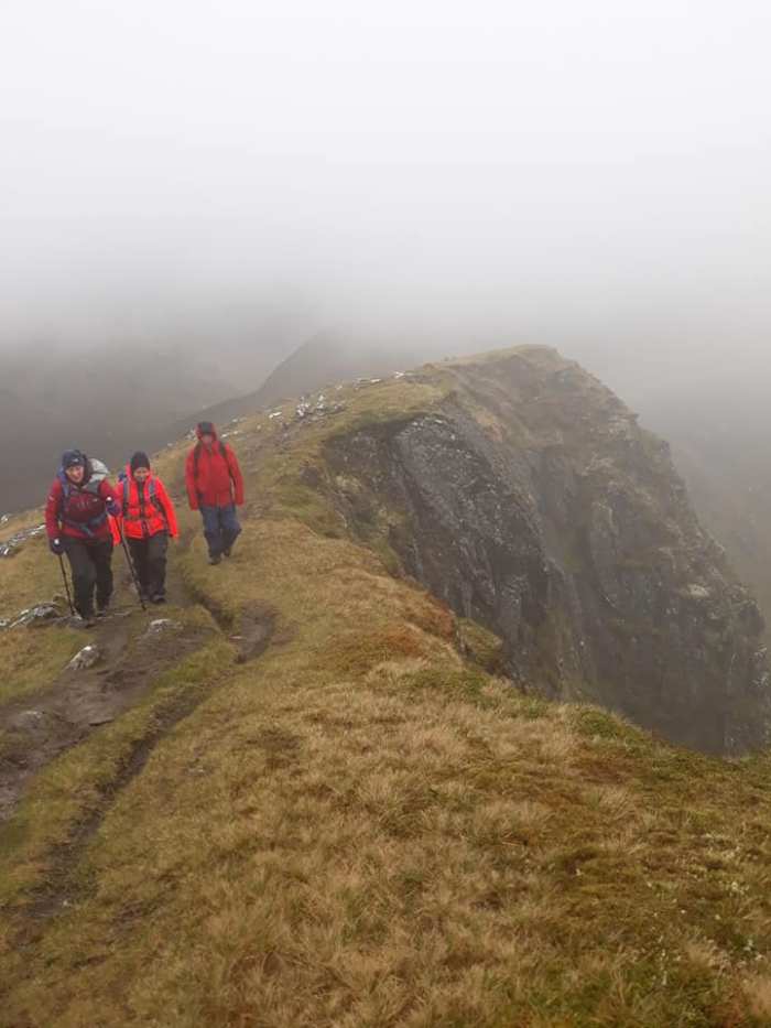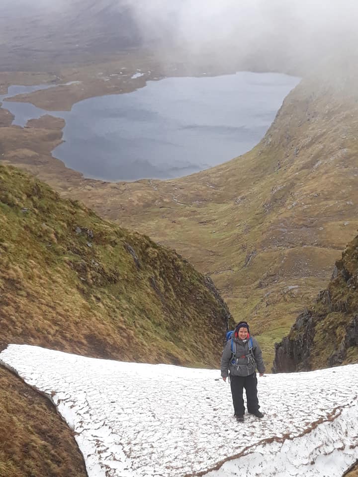 George and Susan were to continue their 3rd Munro round by heading back down the road to the Fannichs where the mountains of Sgurr nan Each, Sgurr nan Clach Geala and Meall a’ Chrasgaidh were waiting to be ticked off. They were joined on their quest by Duncan and Tina who also had these hills on their “to do” list. Despite the squally conditions and the lack of views, they reported an enjoyable day out with a “mission accomplished” rubber stamp on their return.