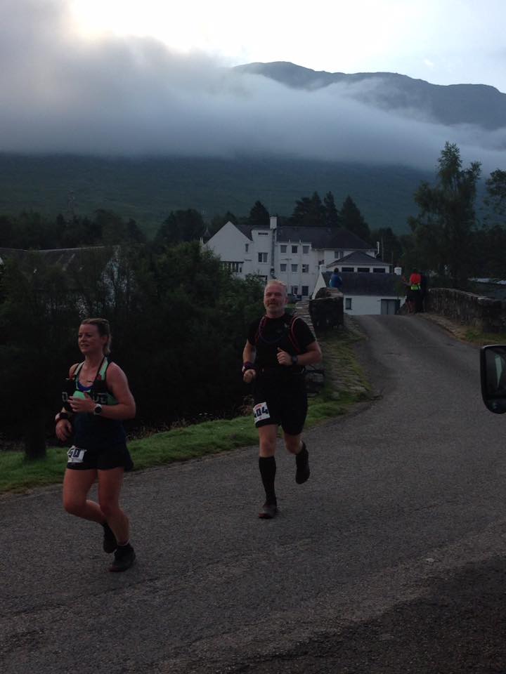 While the Munro baggers were bagging, Lorn was engaged in a gruelling 42 mile run over the northern extent of West Highland Way. Raymond and Jim had got up early to cheer him on and now Norrie was able to offer some words of encouragement through the car window as he passed him at Blackrock cottage.