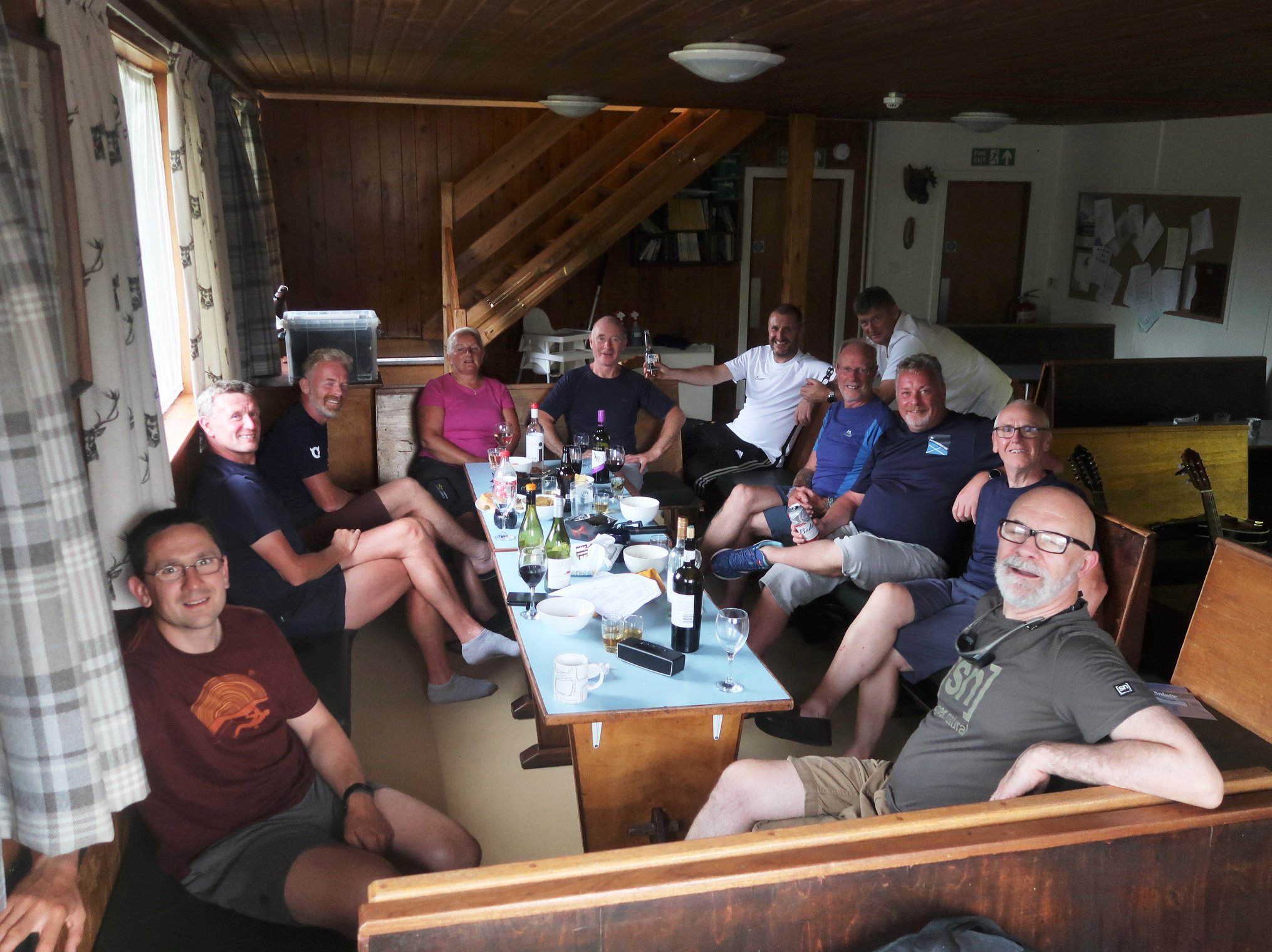 The Club’s August meet took them to pastures new at least in terms of the accommodation. The Glencoe Ski Lodge sits partially hidden in the forest just west of the River Orchy and south west of Bridge of Orchy. The lodge is an impressive two storey wooden building with enough bedrooms to accommodate the club twice over. It has its quirks though with the only fridge situated in the small upstairs kitchen. Nevertheless, a slight rearrangement of the furniture resulted in a cosy atmosphere with, for once, no need to light the fire.