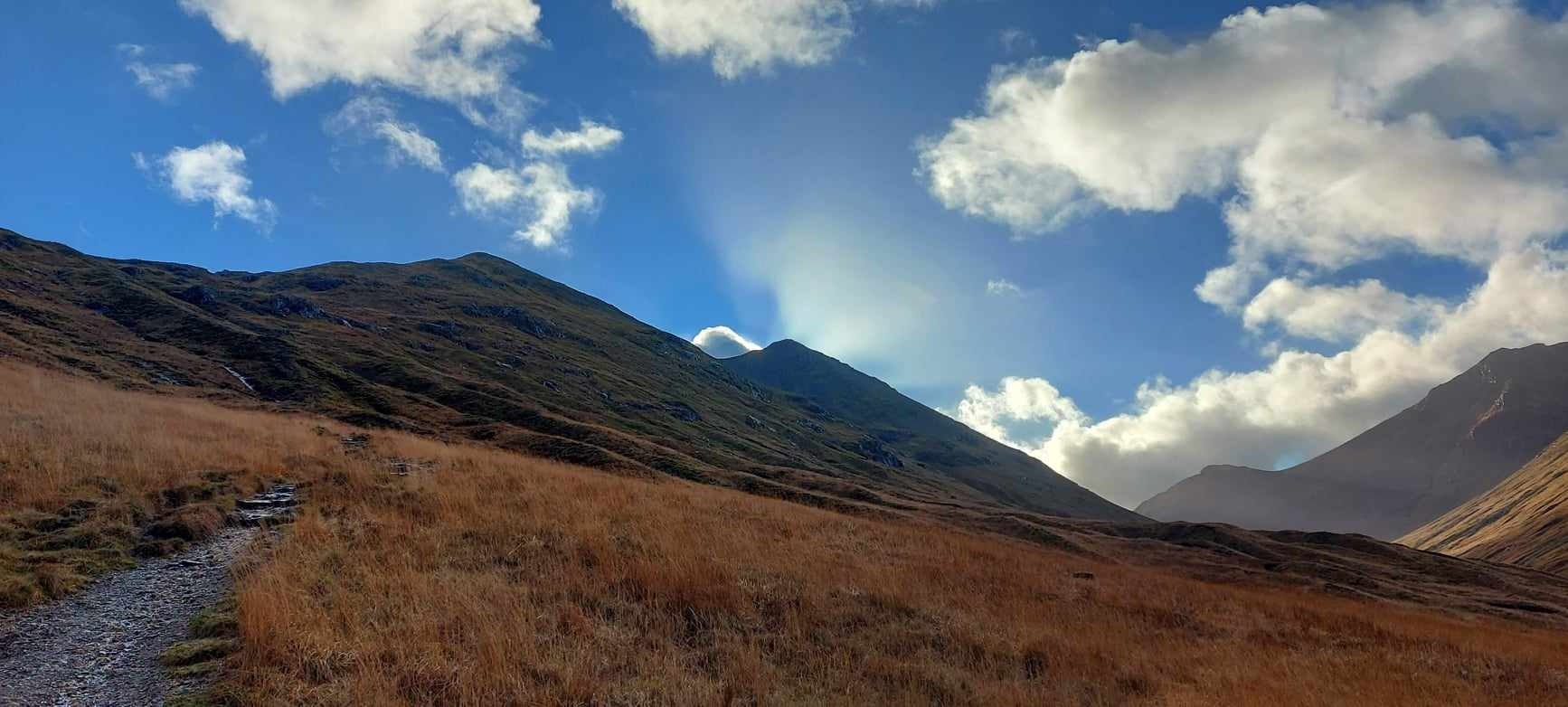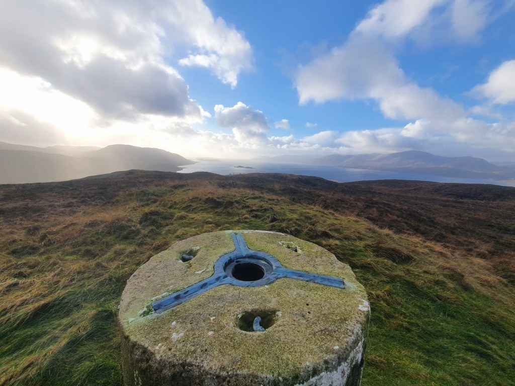Susan and George meanwhile, had decided on a short hop on the Corran Ferry to Ardgour and the Corbett Beinn na h-Uamha, approached on the bike from Sallachan via Glen Gour, and probably just edged it from Norrie, Adrian and Ania for epic of the day. The track was rougher than hoped for and the bikes had to be stowed not far past Loch nan Gabhar, but not before George had attempted some Aquagym in a deep puddle. It wasn’t long before George’s penchant for Scotland’s waterways was again put to the test, with an unplanned dip while crossing the River Gour. The pockets of George’s waterproofs passed the test when, some time later, he found them still full of water. Undeterred, the intrepid pair continued to gain the Corbett, normally a wonderful viewpoint. And on the return, found a slippery old oak to get back over the river unscathed and back on to the bikes.A quirky fact about Beinn na h-Uamha, is that it’s the 2nd lowest Corbett at 762m and its near neighbour, Sgùrr a’Chaorainn, a metre shorter at 761m is the joint highest Graham. Both punch well above their height.